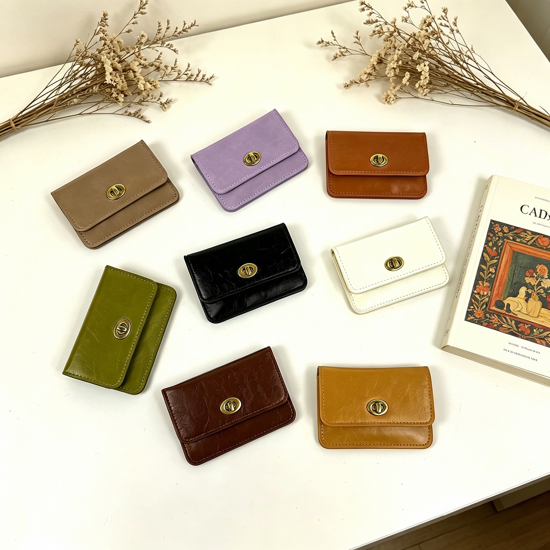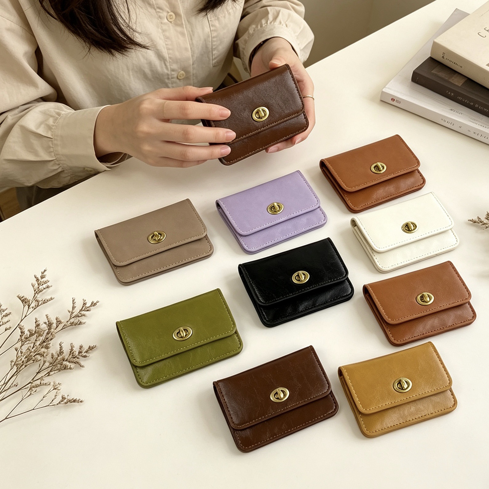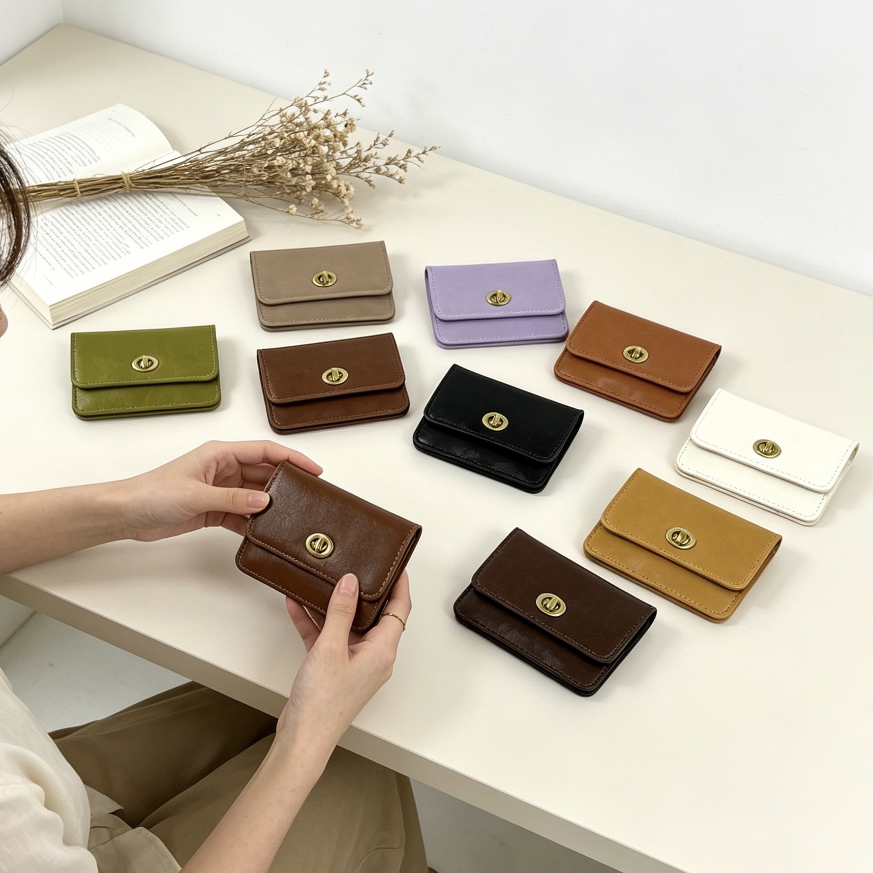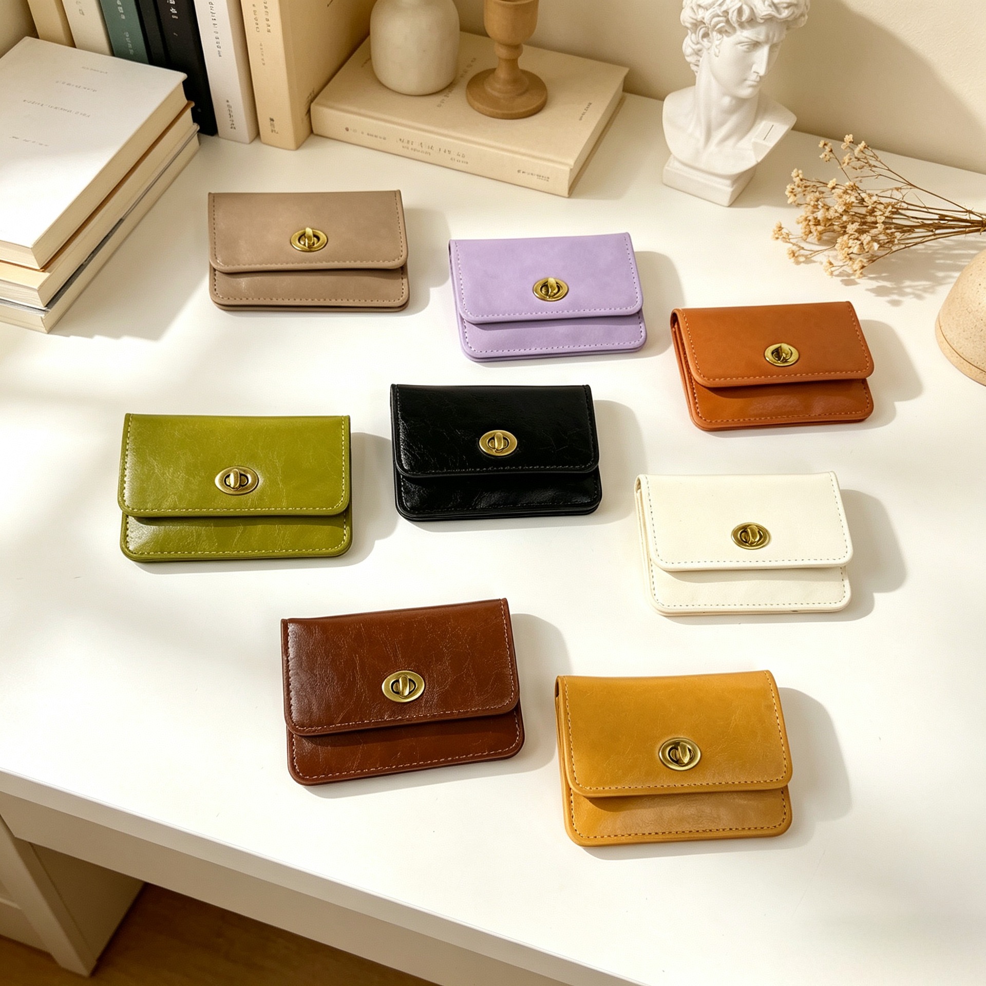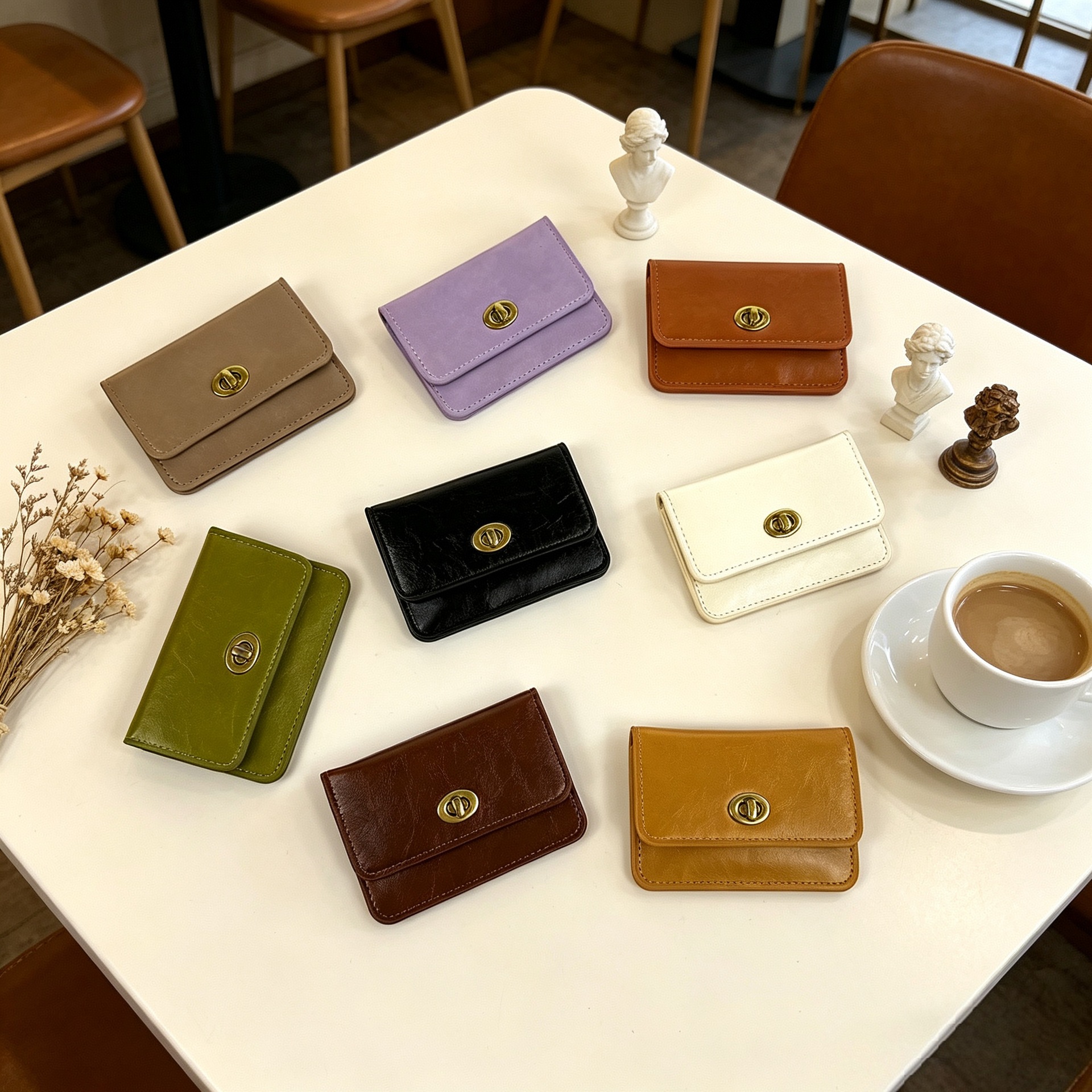 새로운 크로스보더 스타일의 컴팩트하고 심플하며 고급스러운 솔리드 컬러의 멀티 카드 슬롯 동전 지갑 및 명함 케이스