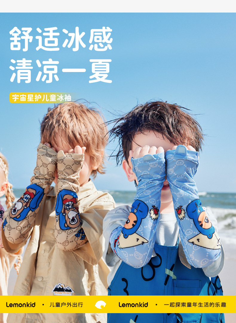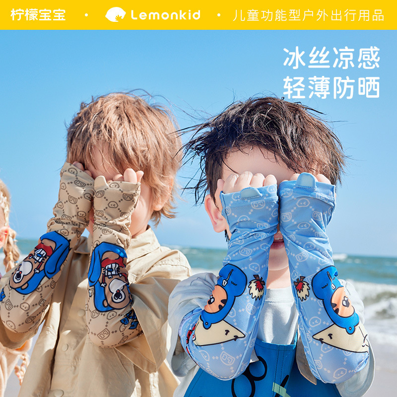 레몬 아기 어린이 아이스 슬리브 UV 보호 아기 태양 보호 오버 슬리브 소년과 소녀 어린이 아이스 실크 여름 얇은 오버 셀브스토어 가기