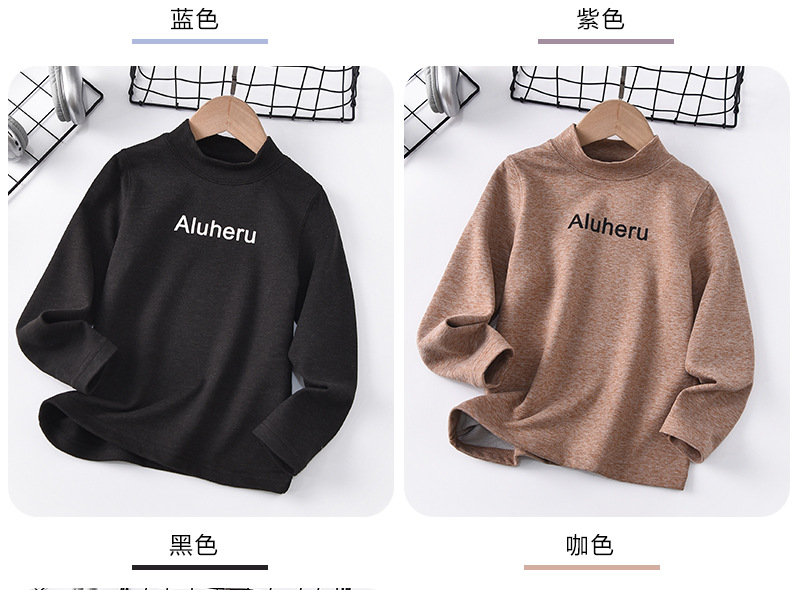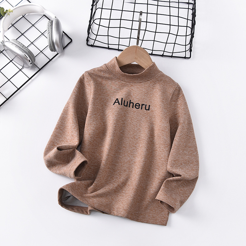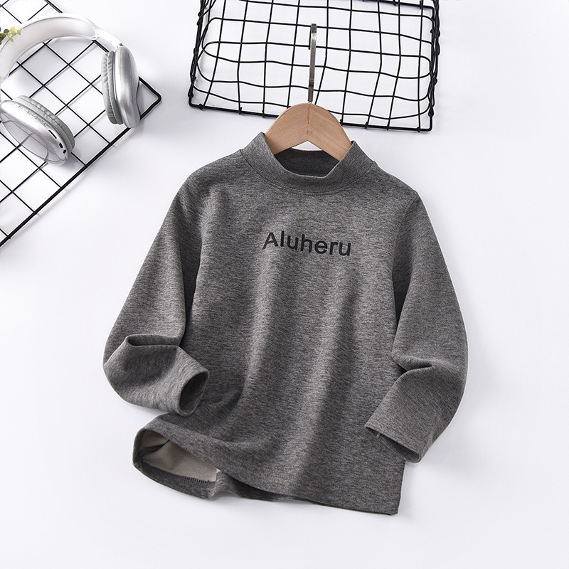 아동복 도매 봄 의류 어린이 드 벨벳 바닥 셔츠 소녀 편지 인쇄 최고 남학생 하프 터틀넥 탑