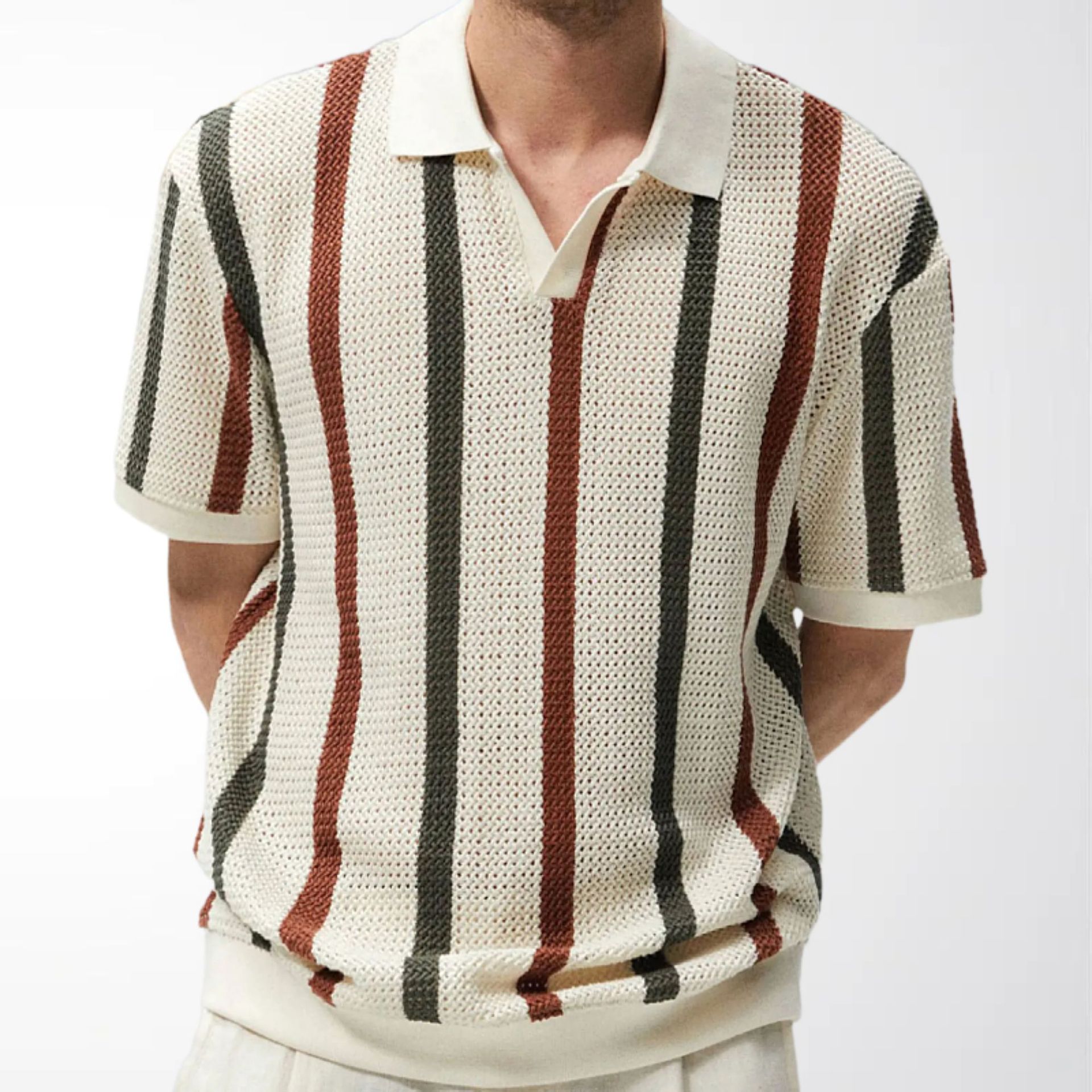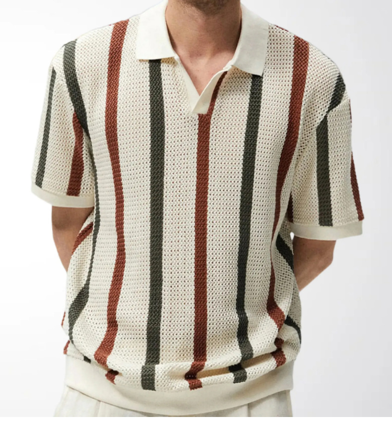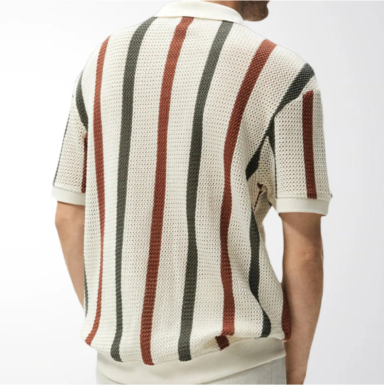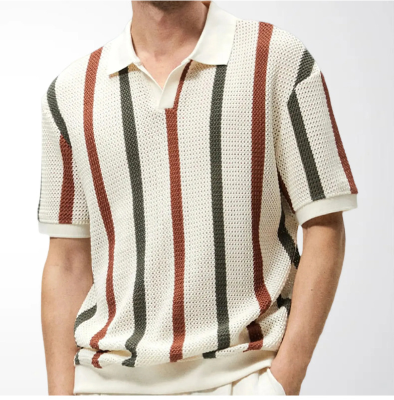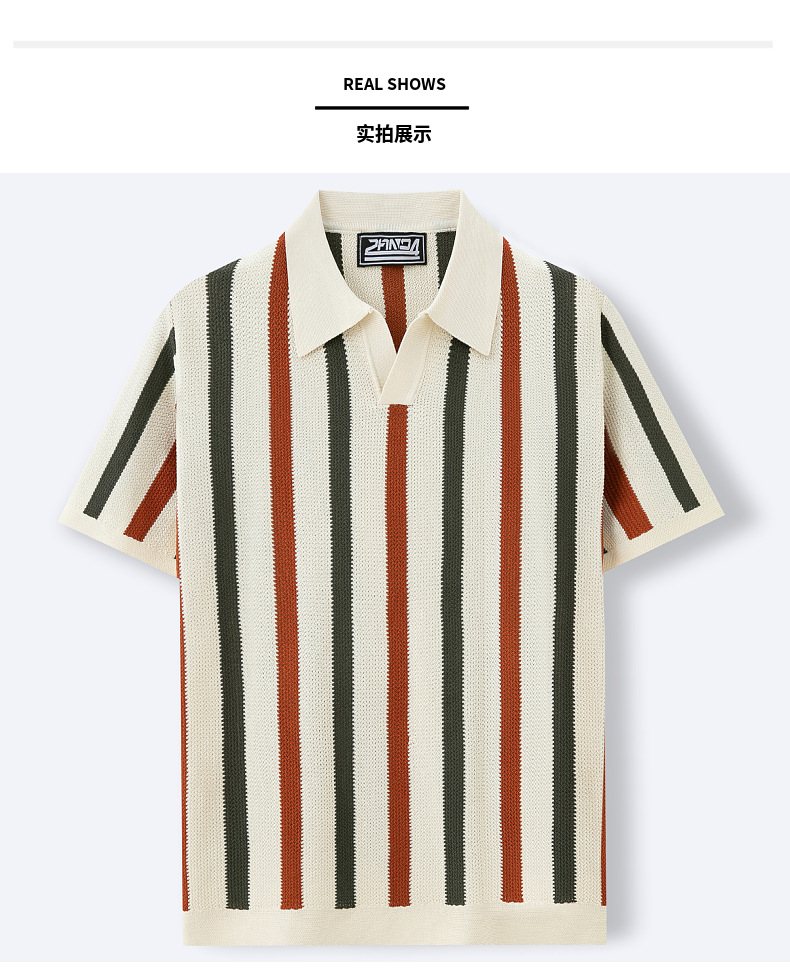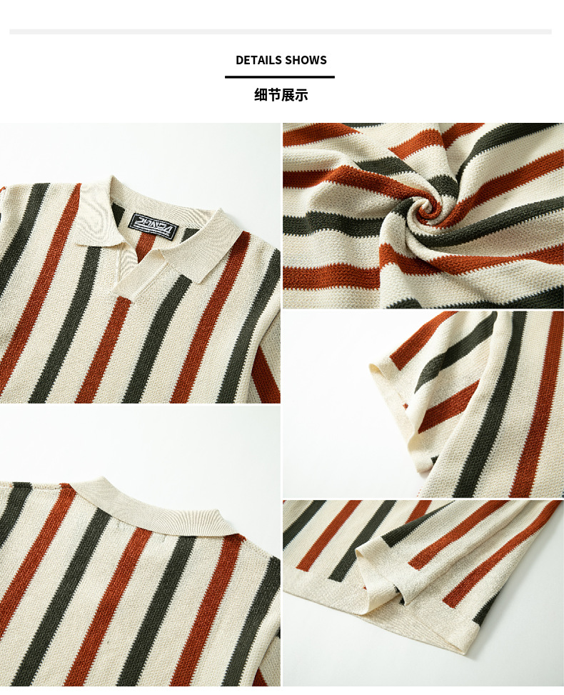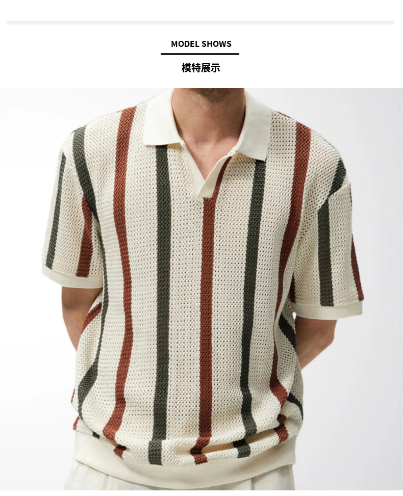 아마존 남성 유럽과 미국 스타일의 두꺼운 바늘 중공 스웨터 스트라이프 컬러 모직 캐주얼 폴로 셔츠 SY0213