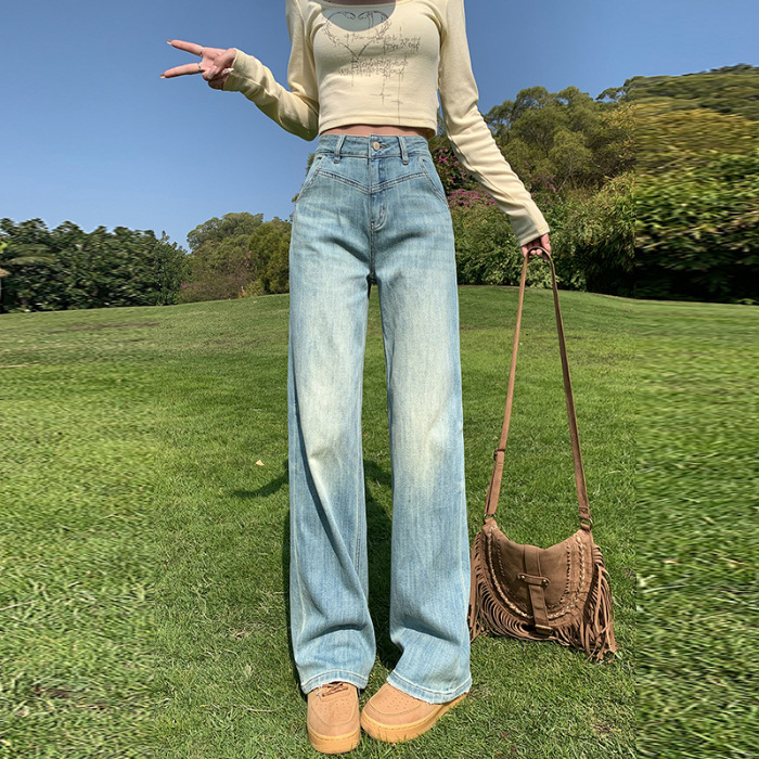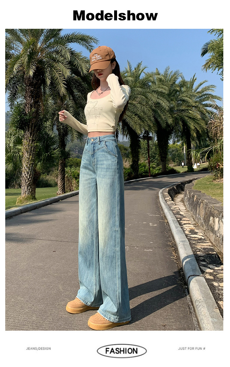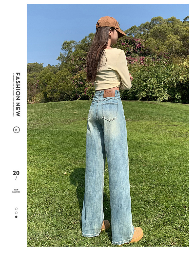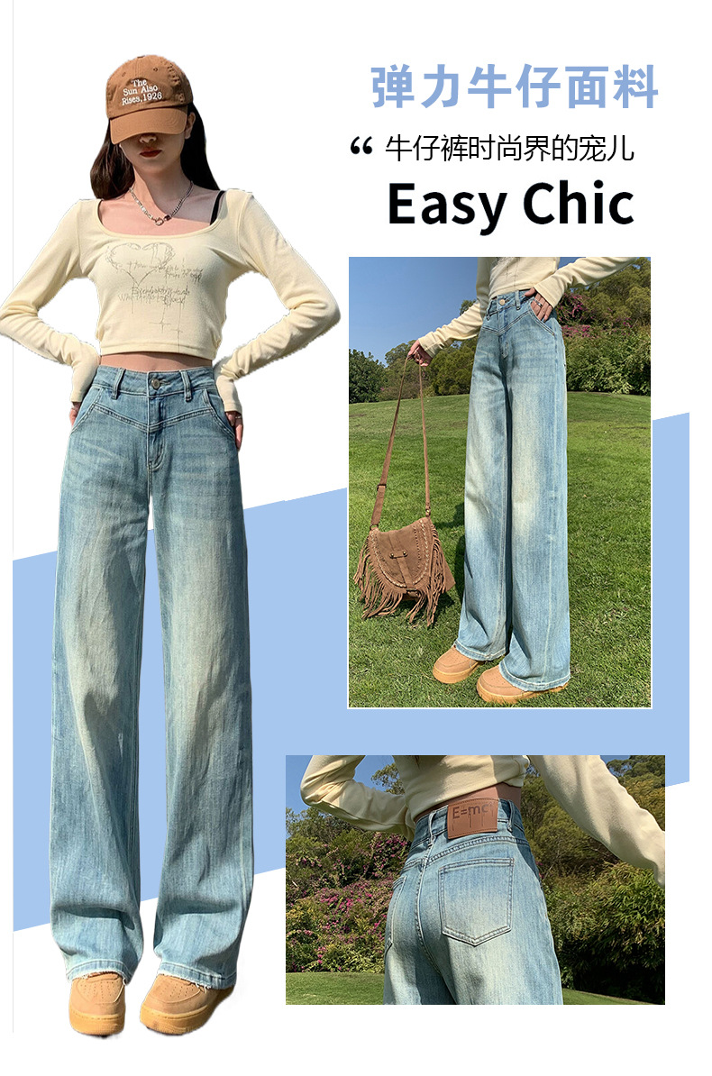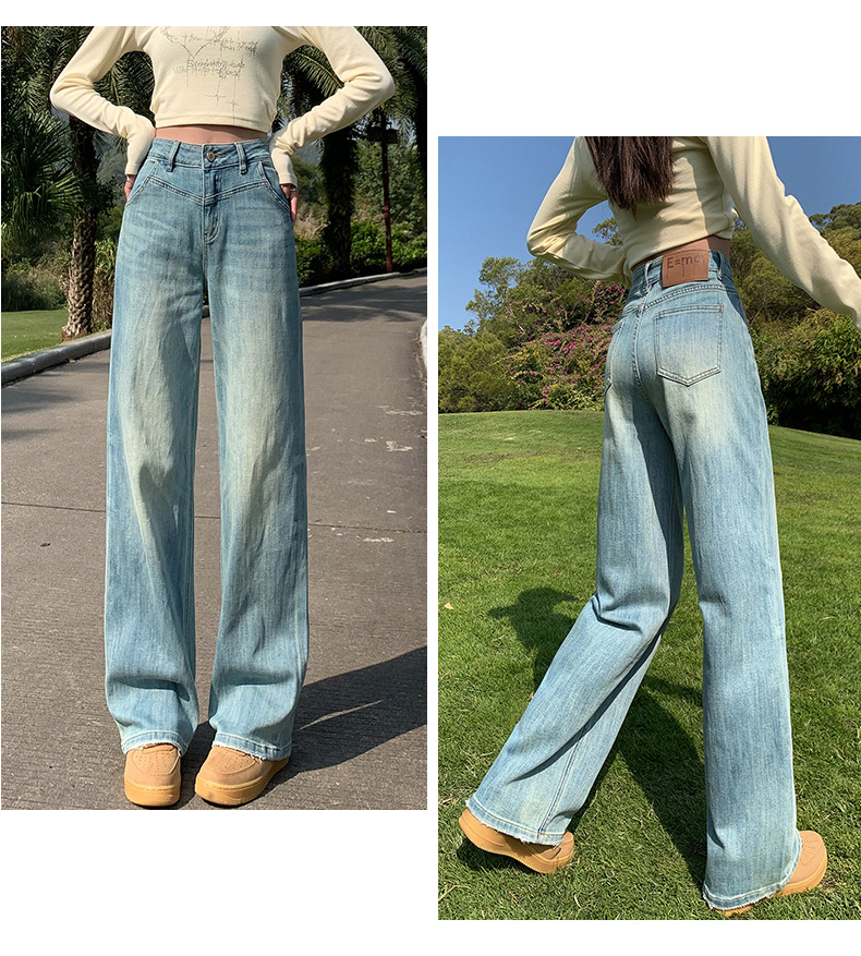 Muhanshe 여성용 향수 블루 좁은 버전 슬림 와이드 레그 청바지 복고풍 스트레치 패션 컬러 스몰 스트레이트 팬츠스토어 가기