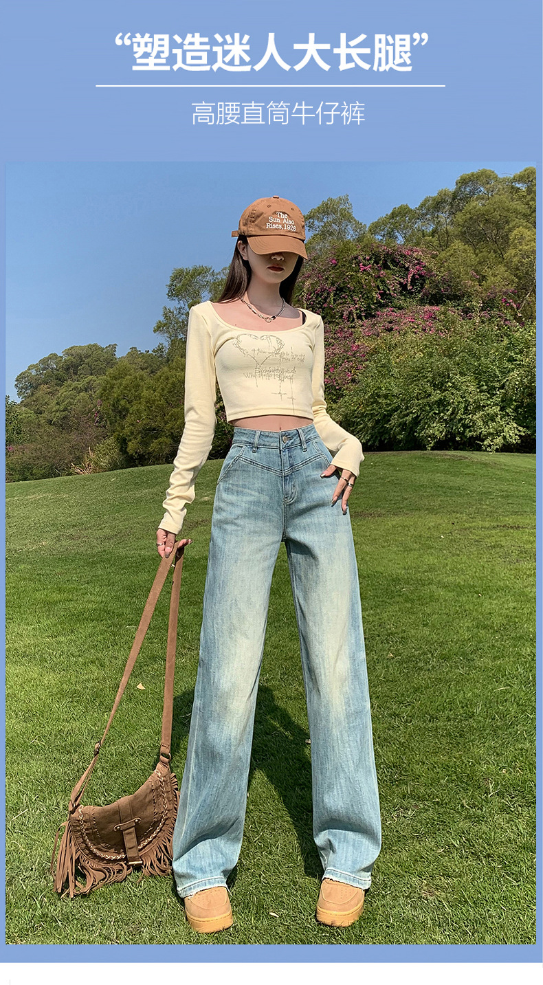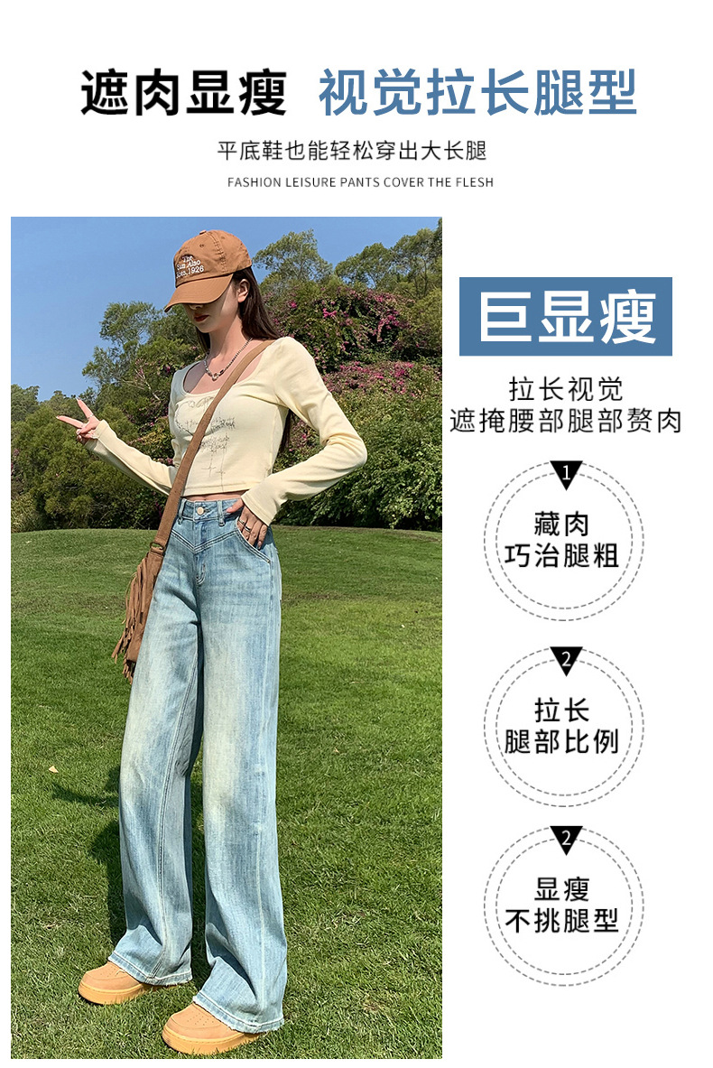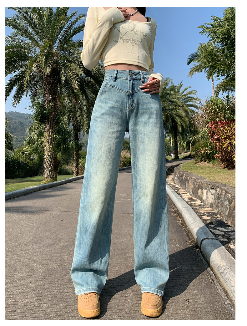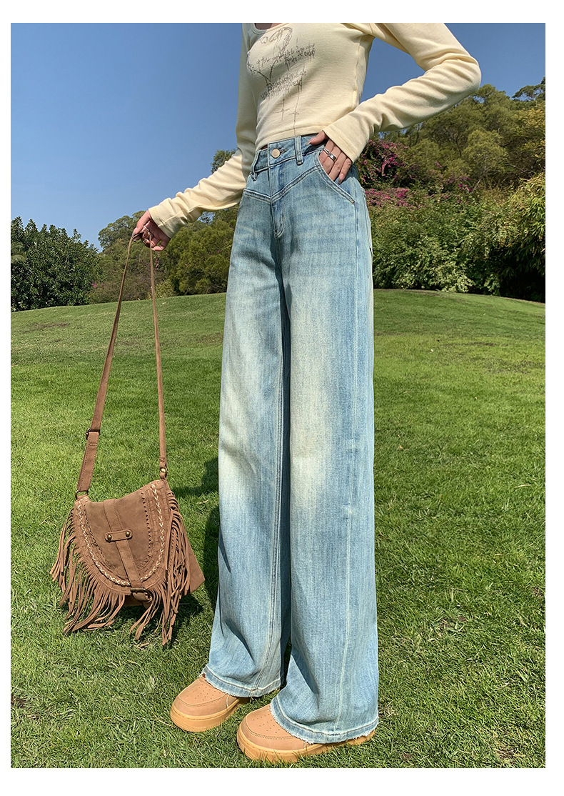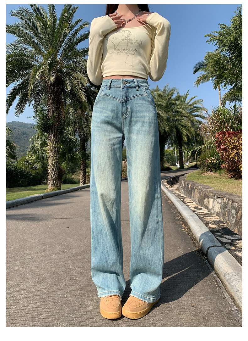 Muhanshe 여성용 향수 블루 좁은 버전 슬림 와이드 레그 청바지 복고풍 스트레치 패션 컬러 스몰 스트레이트 팬츠스토어 가기
