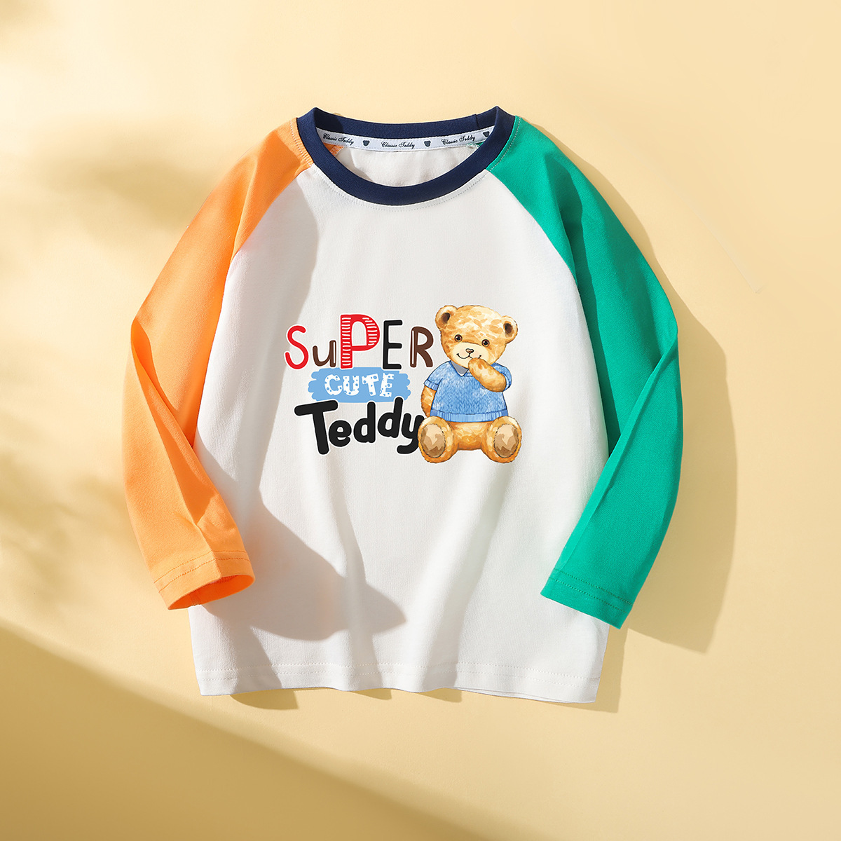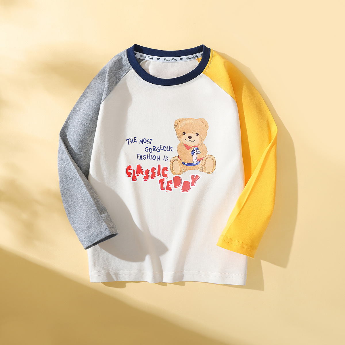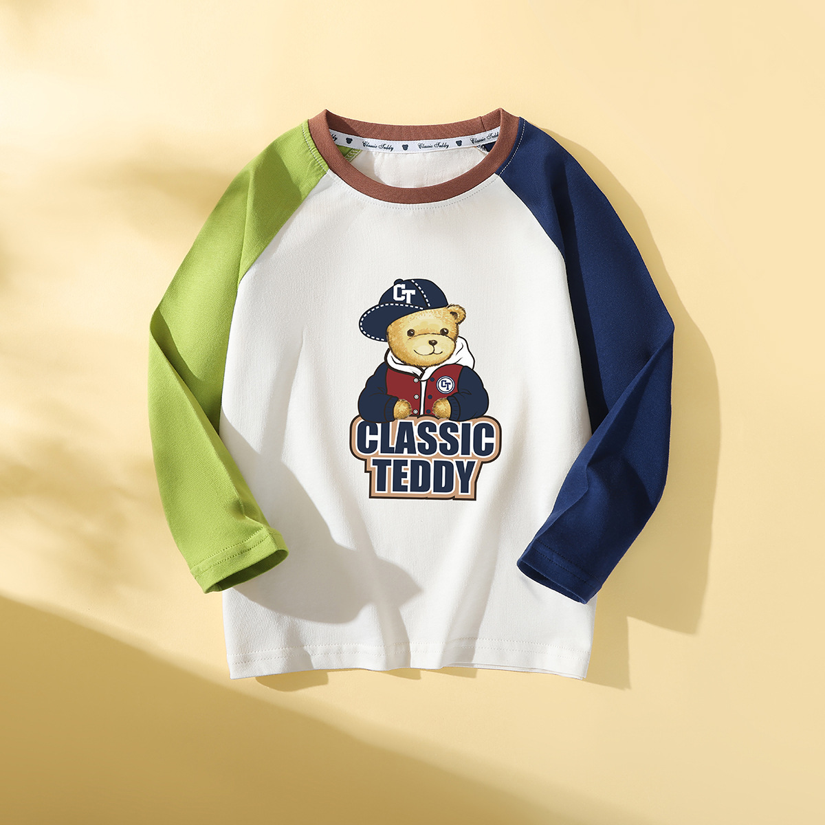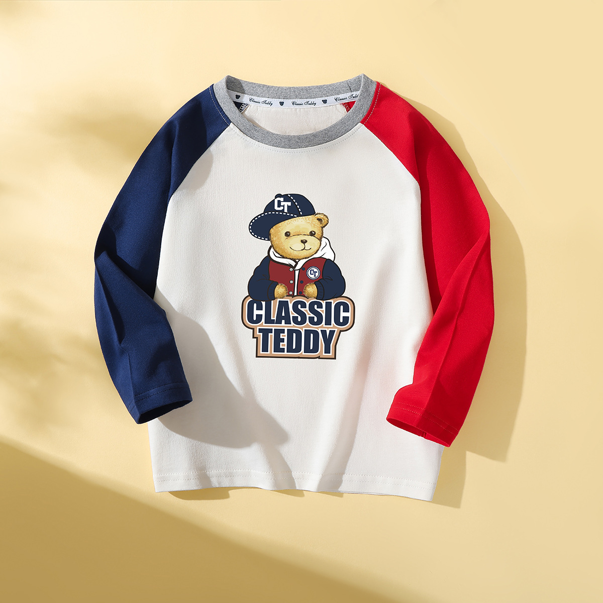 클래식 테디 아동복 아동용 긴팔 봄 소년 소녀 티셔츠 아동용 라글란 슬리브 티셔츠 서양식상의