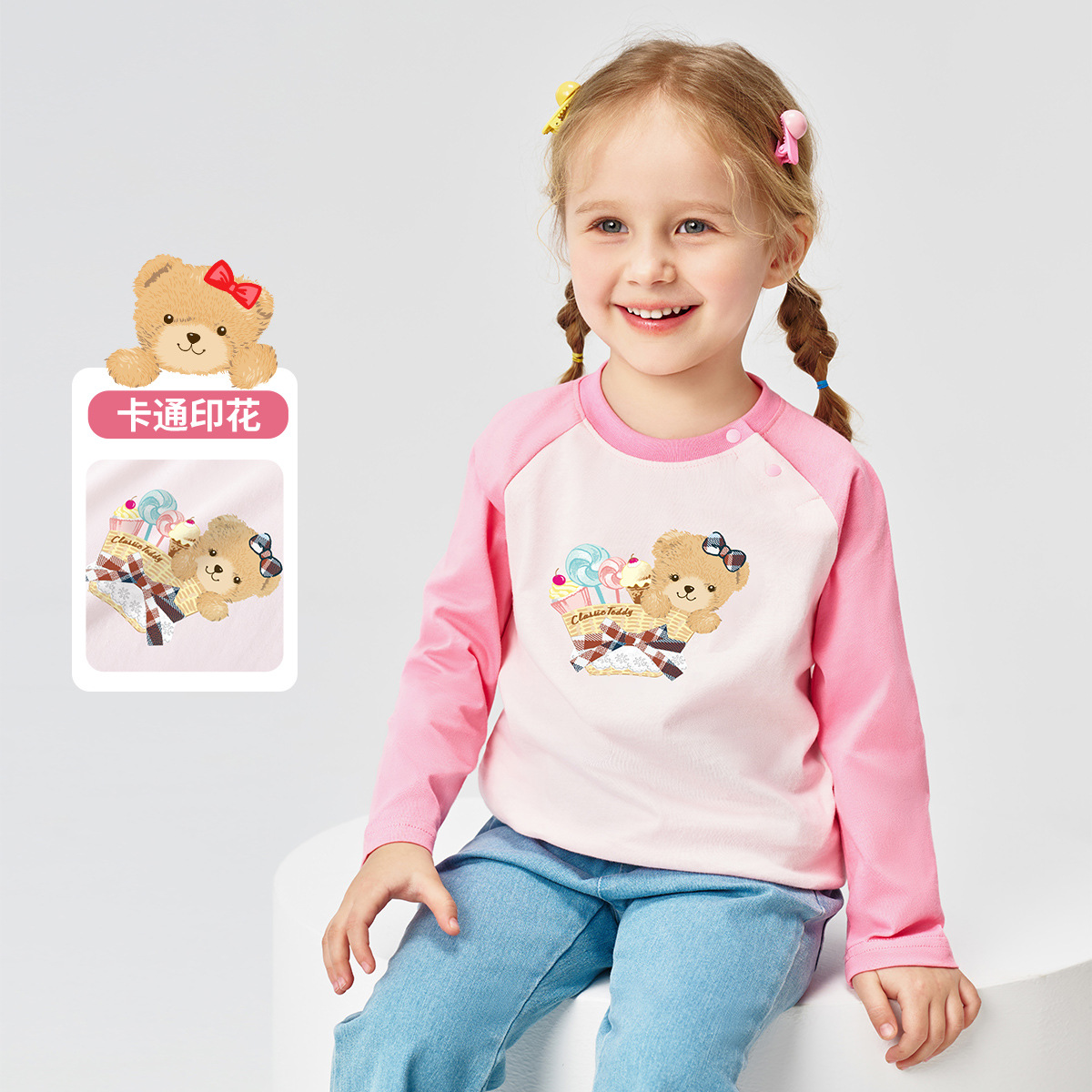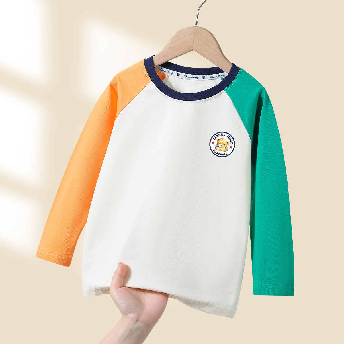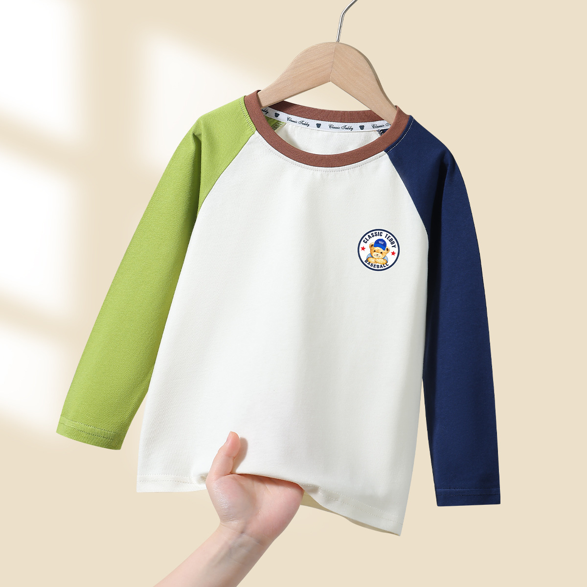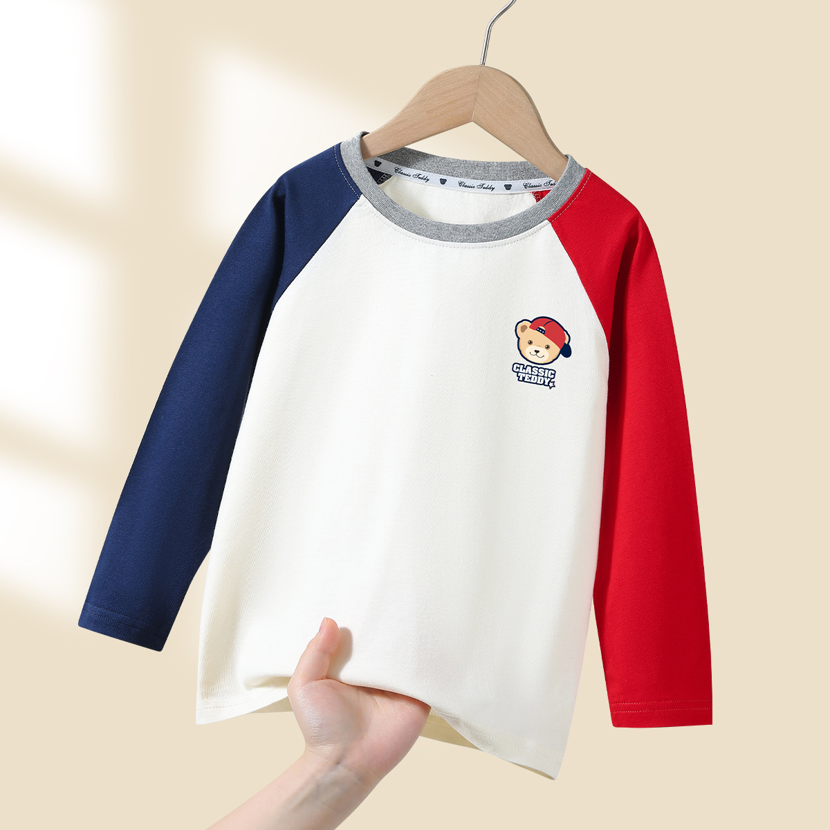 클래식 테디 아동복 아동용 긴팔 봄 소년 소녀 티셔츠 아동용 라글란 슬리브 티셔츠 서양식상의