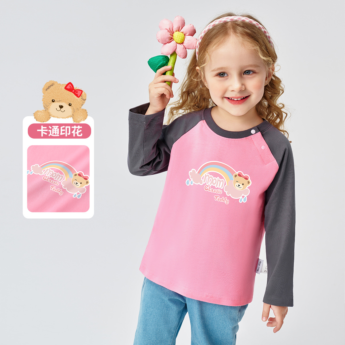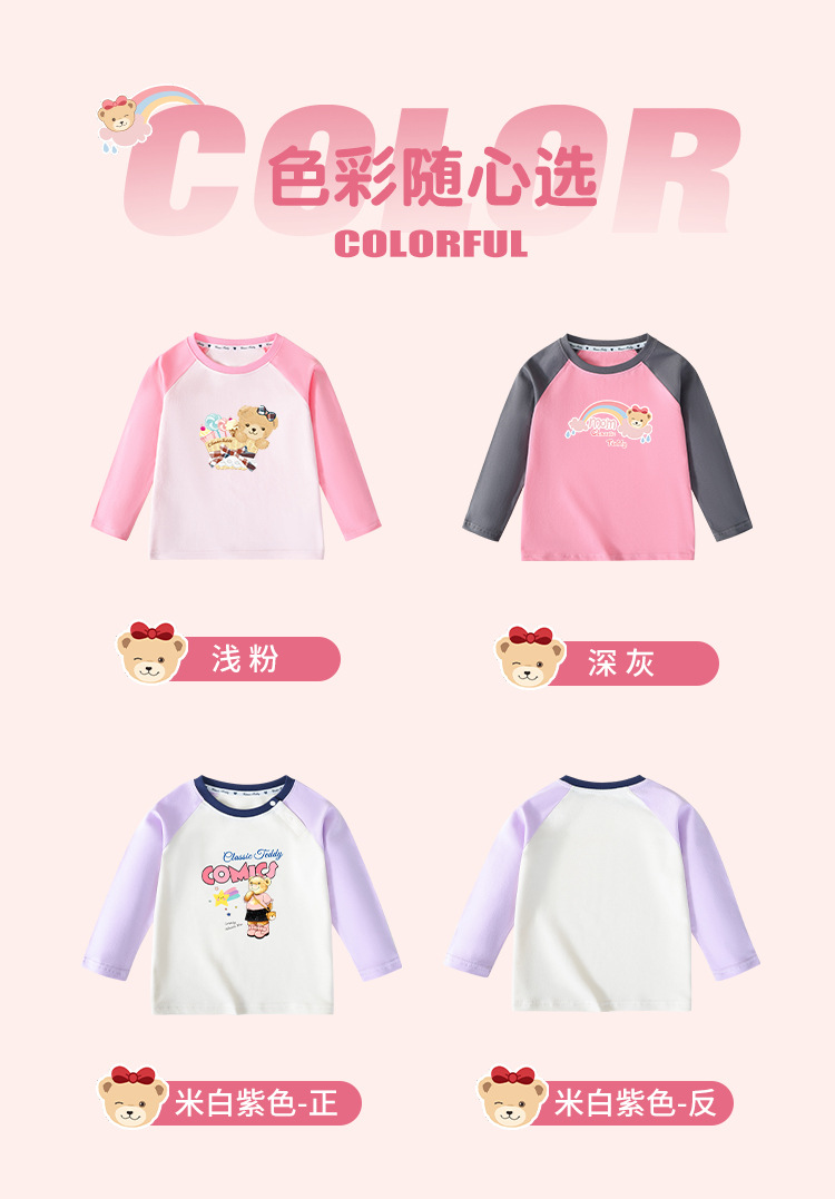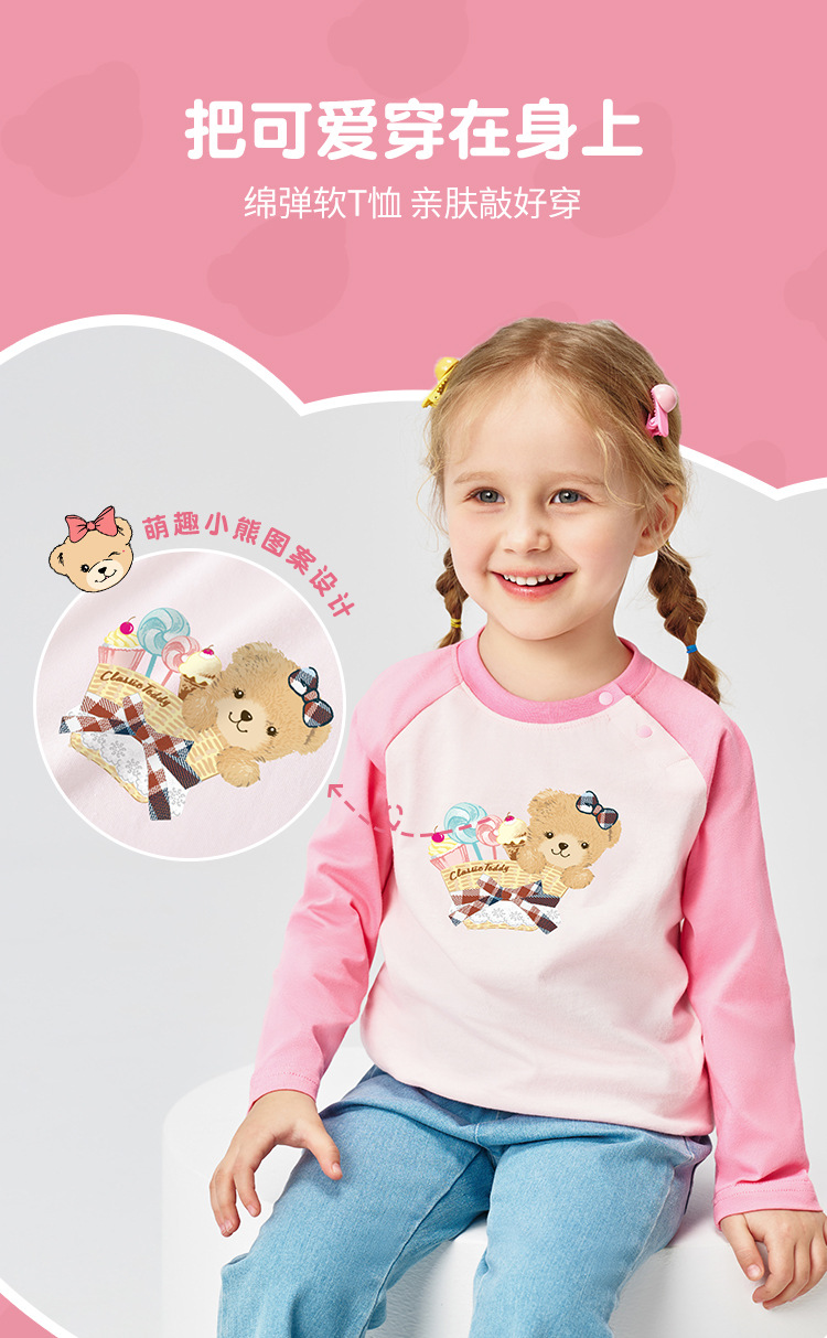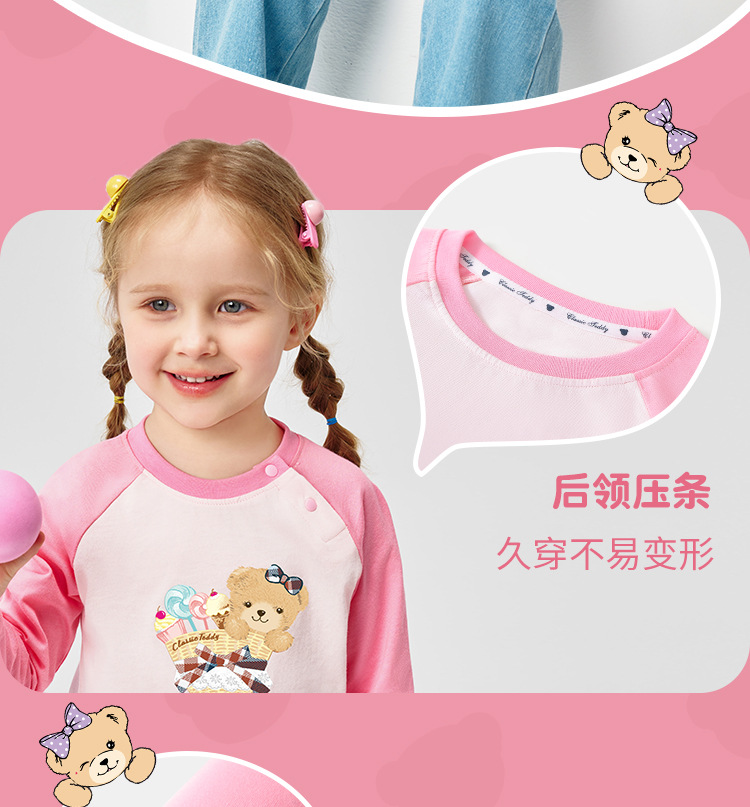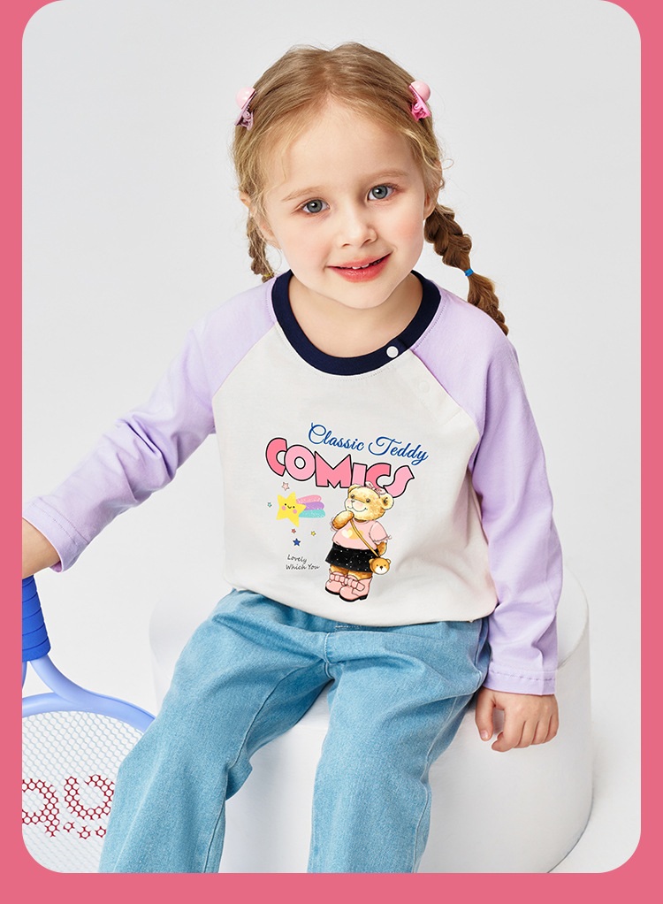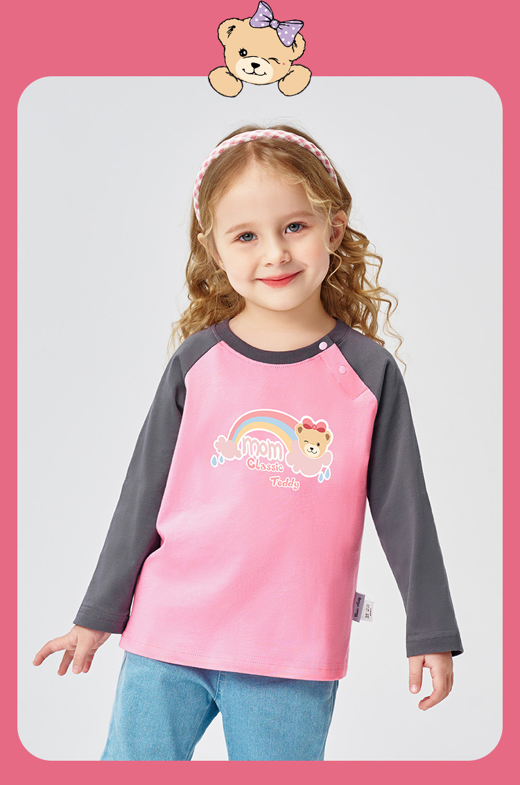 클래식 테디 아동복 아동용 긴팔 봄 소년 소녀 티셔츠 아동용 라글란 슬리브 티셔츠 서양식상의