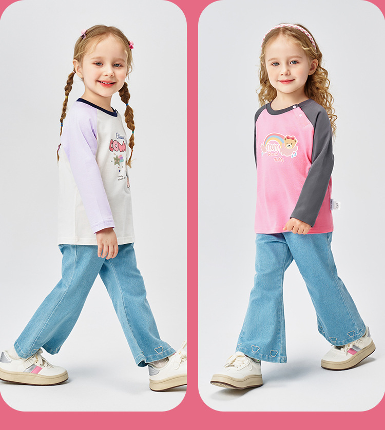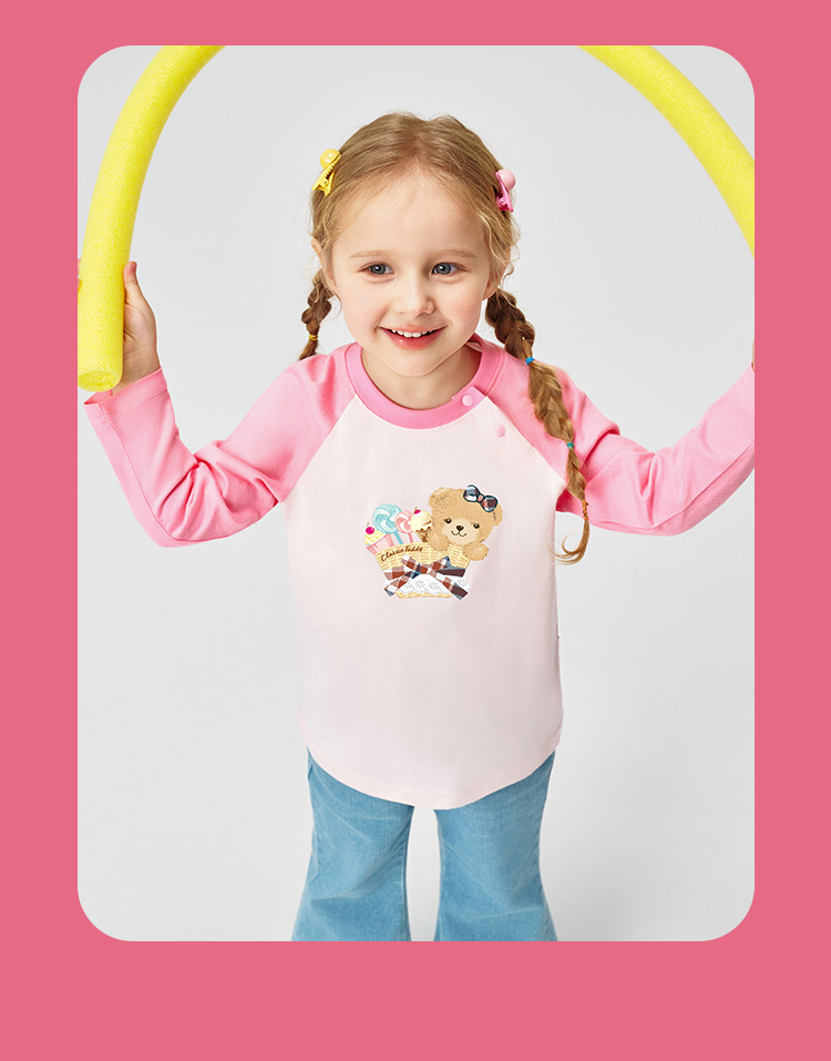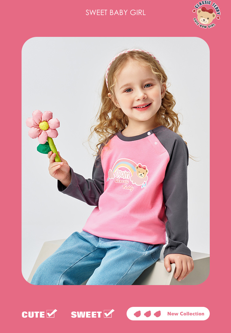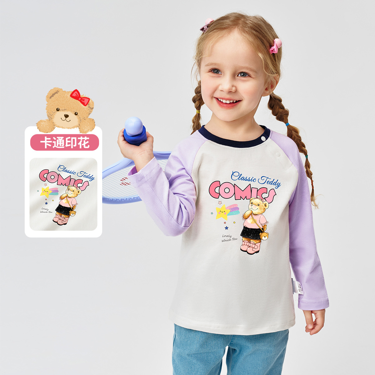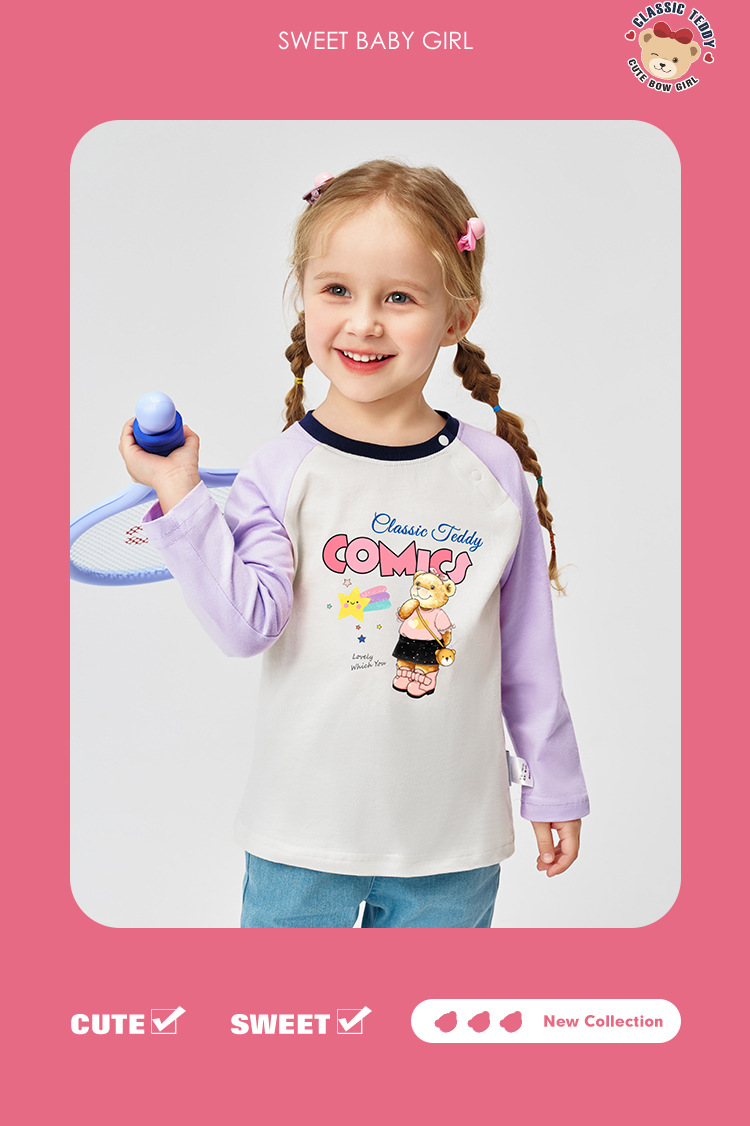 클래식 테디 아동복 아동용 긴팔 봄 소년 소녀 티셔츠 아동용 라글란 슬리브 티셔츠 서양식상의