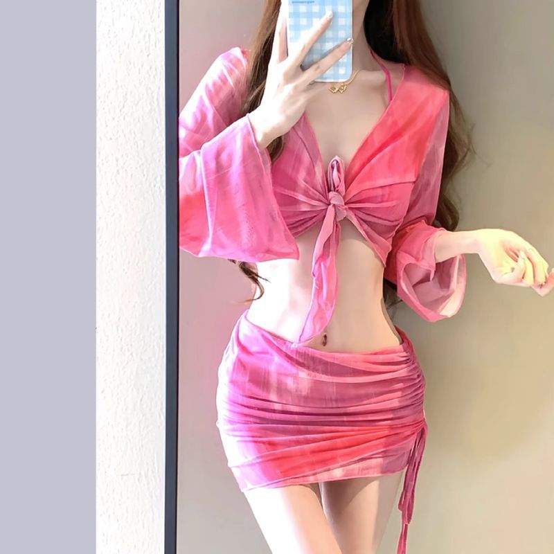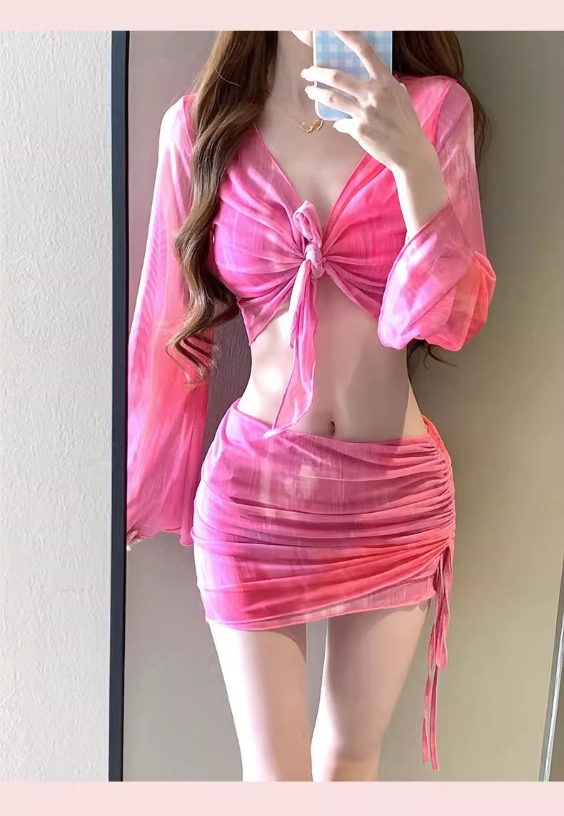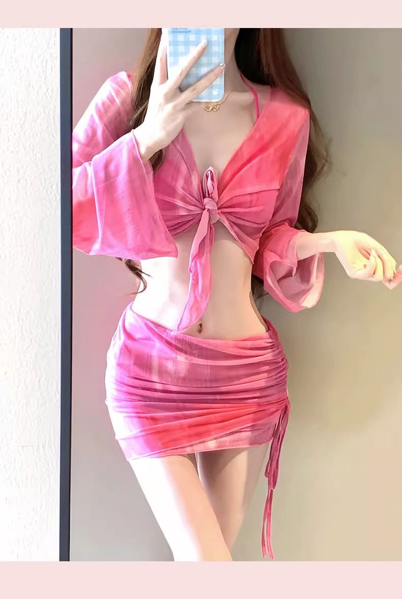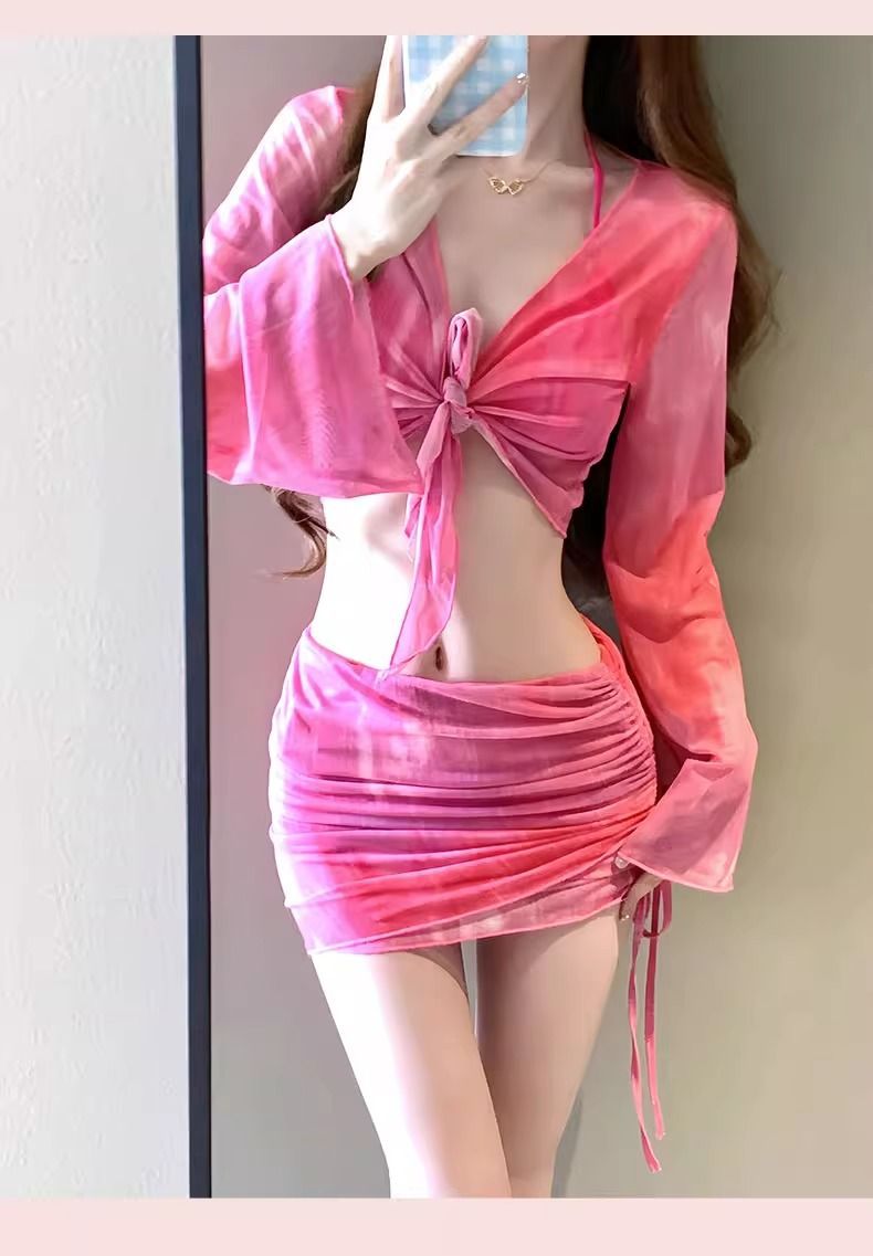 여성용 수영복, 비키니 4피스 세트, 슬림하고 단정한 디자인, 학생용, 작은 가슴, 2026년 신상, 온천용, 소녀 수영복