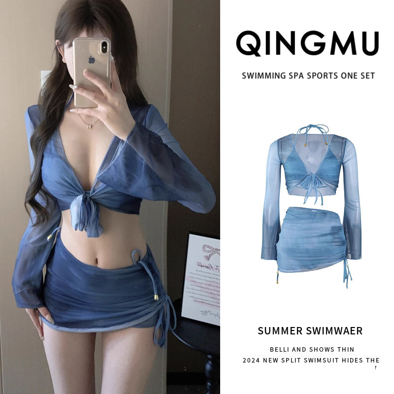 여성용 수영복, 비키니 4피스 세트, 슬림하고 단정한 디자인, 학생용, 작은 가슴, 2026년 신상, 온천용, 소녀 수영복스토어 가기