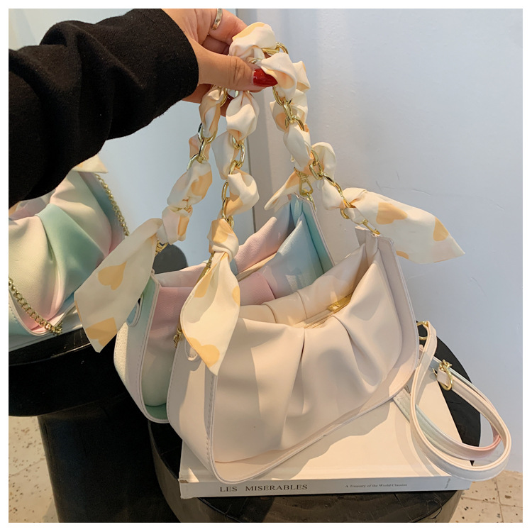 2024 새로운 부드러운 가죽 질감 메신저 가방 여성 가방 한국식 구름 주름 캐주얼 서양식 핸드백 숄더백스토어 가기