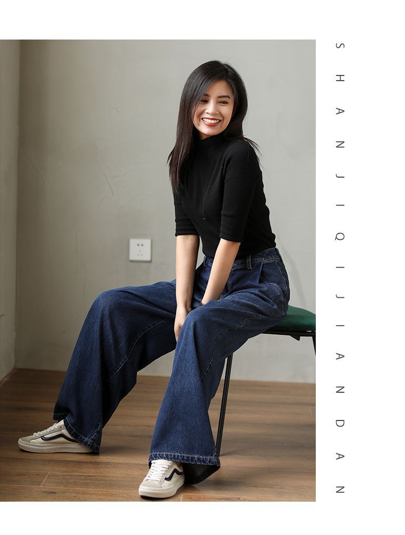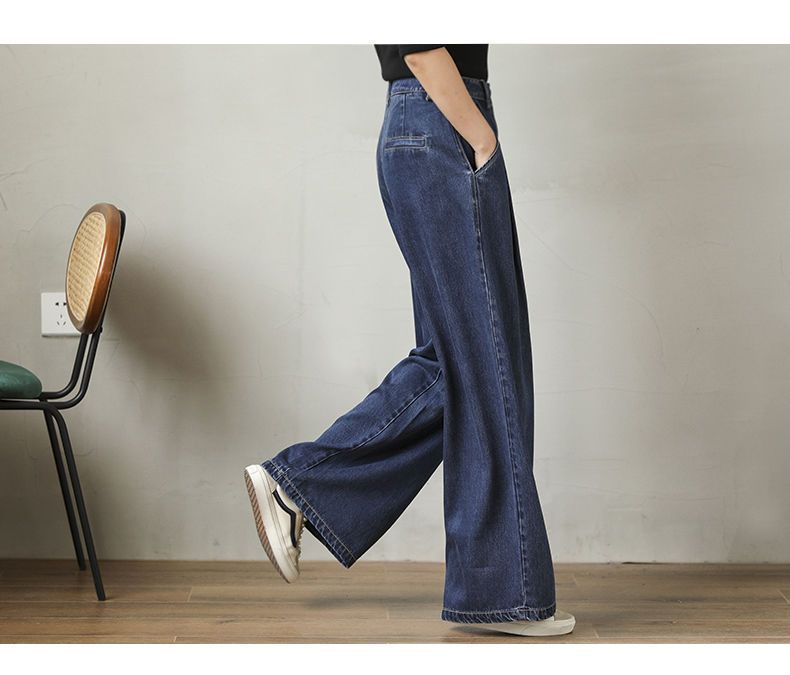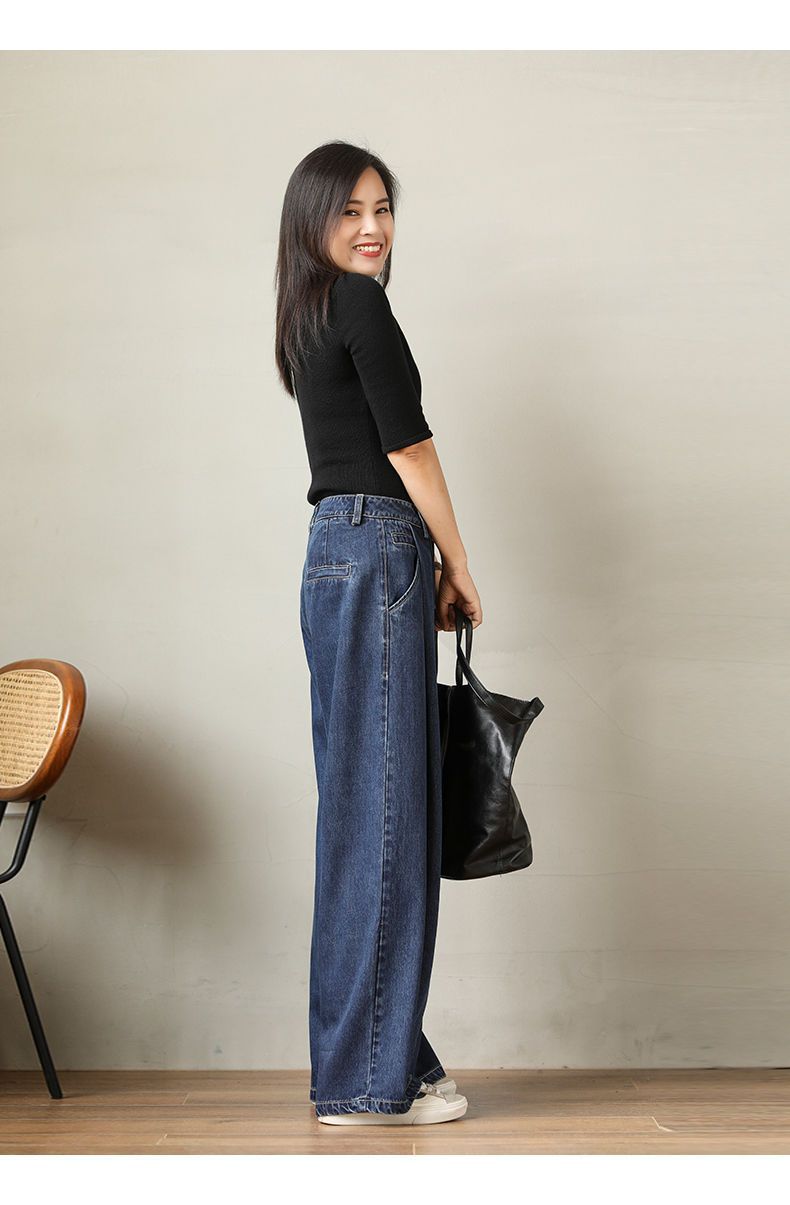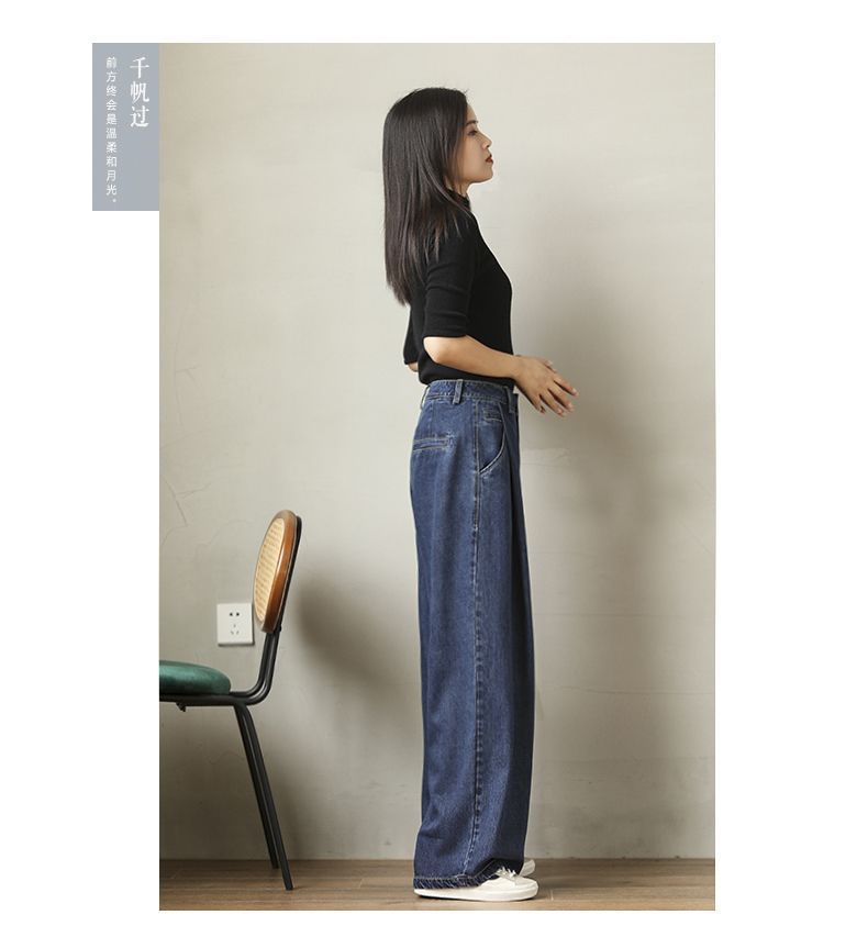 핫한 하이웨이스트 청바지 가을 여성복 2025 루즈핏 다용도 와이드 팬츠 드레이프 슬림 캐주얼 롱 팬츠 트렌디스토어 가기