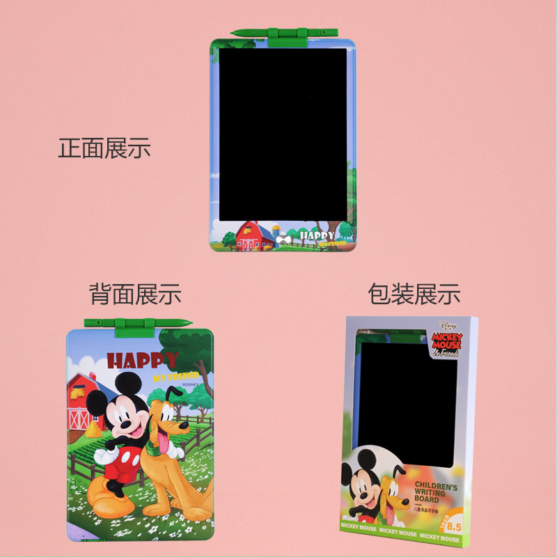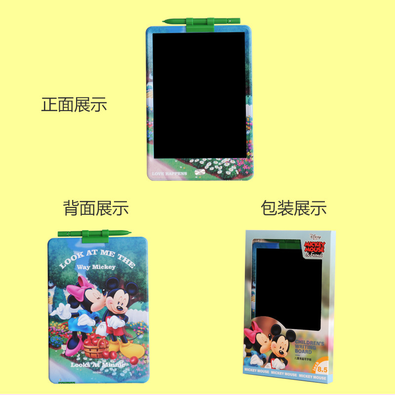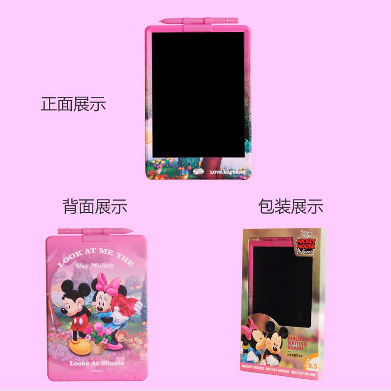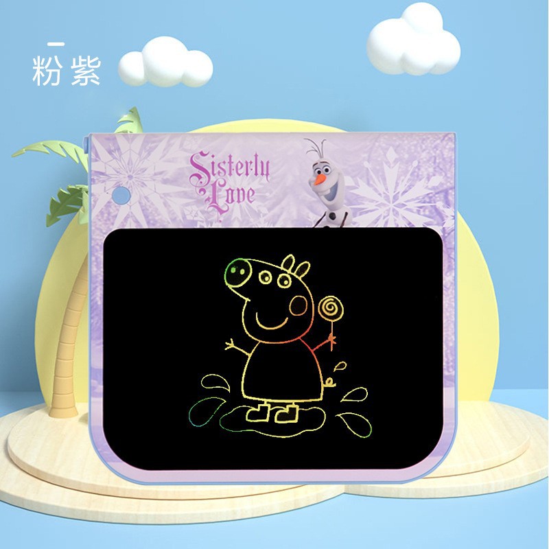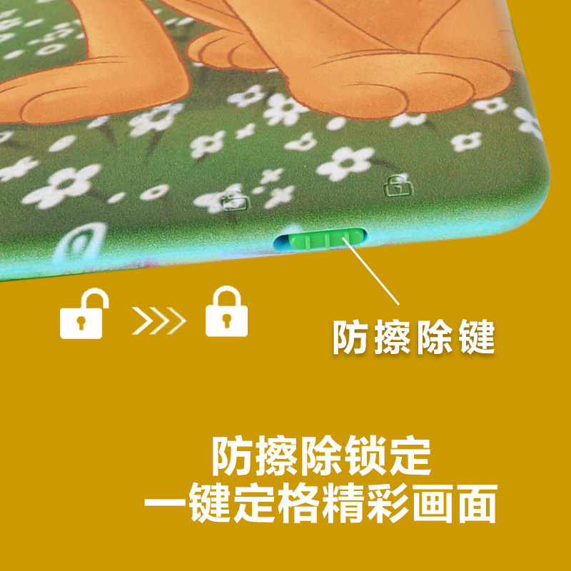 迪士尼正版品质,液晶手写板可以作为我们绘画的工具,卡通液晶手写板就非常适合小朋友拿去练习绘画使用,比如父母可以和自己的孩子一起绘画,这样不仅能够增加亲子感情而且还可以培养孩子的绘画兴趣和激发孩子的创作力和想象力。给予孩子更长久的童年陪伴,它们不仅拥有可爱的外观并且笔迹都是高亮的彩虹色。同时高亮顺滑的书写和漂亮绚丽的笔迹可以给我们带来愉快的书写和绘画体验。一款可以绘画草稿算数的手写板 一键清除特点就是轻薄, 方便携带, 走哪都能带上!
