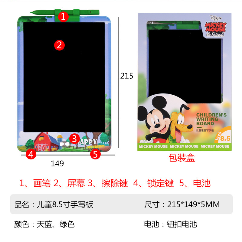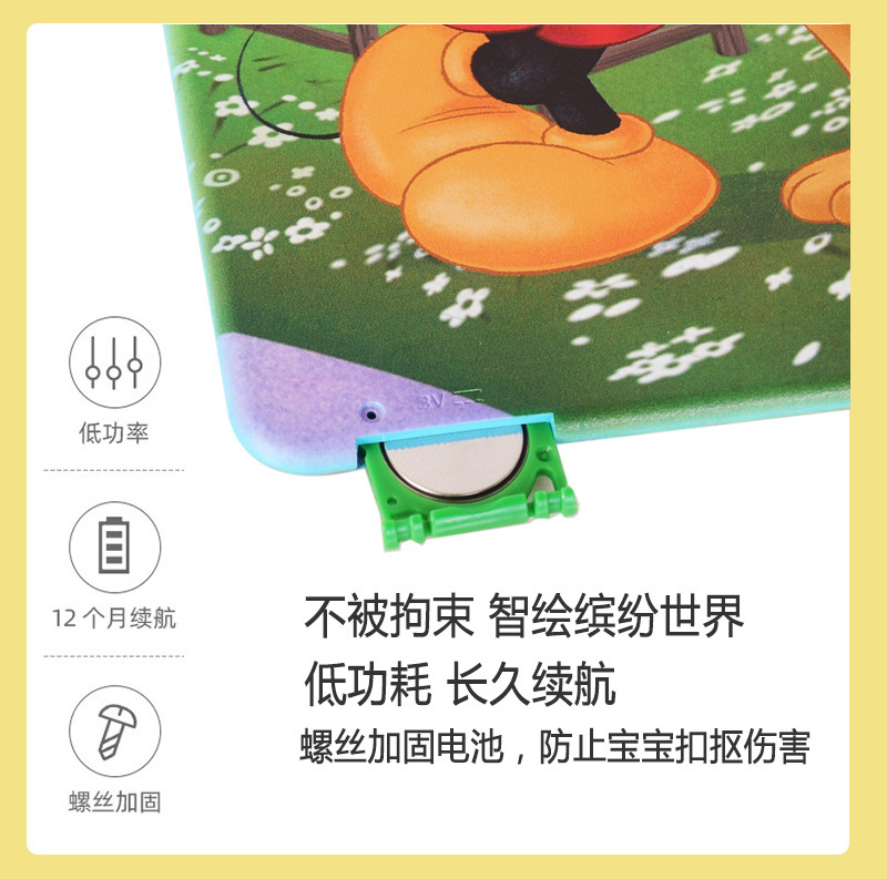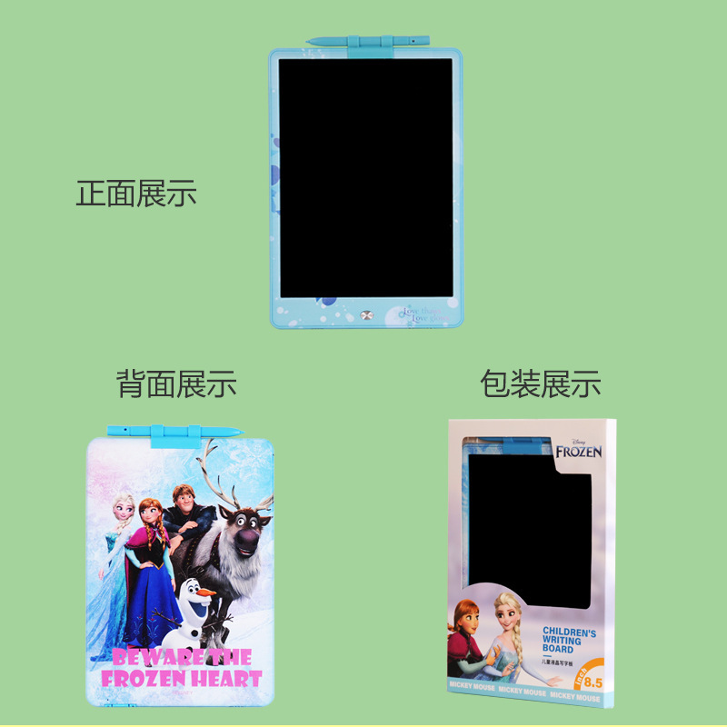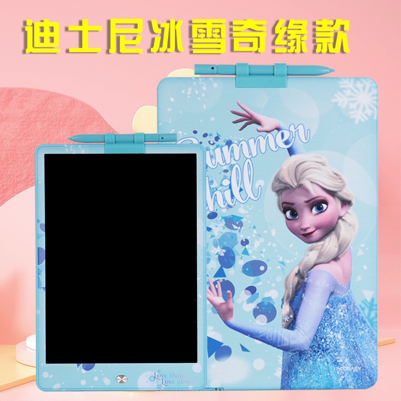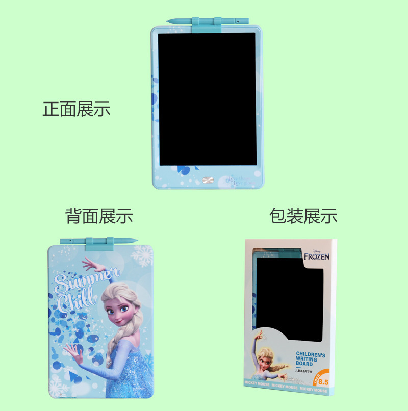 迪士尼正版品质,液晶手写板可以作为我们绘画的工具,卡通液晶手写板就非常适合小朋友拿去练习绘画使用,比如父母可以和自己的孩子一起绘画,这样不仅能够增加亲子感情而且还可以培养孩子的绘画兴趣和激发孩子的创作力和想象力。给予孩子更长久的童年陪伴,它们不仅拥有可爱的外观并且笔迹都是高亮的彩虹色。同时高亮顺滑的书写和漂亮绚丽的笔迹可以给我们带来愉快的书写和绘画体验。一款可以绘画草稿算数的手写板 一键清除特点就是轻薄, 方便携带, 走哪都能带上!