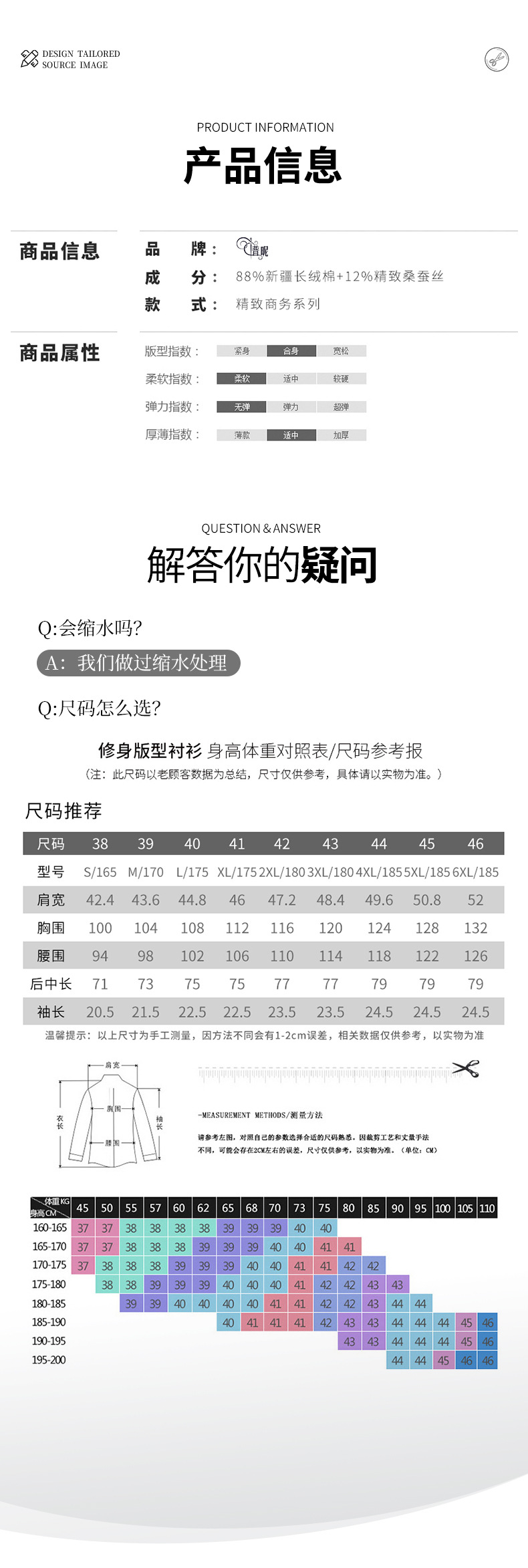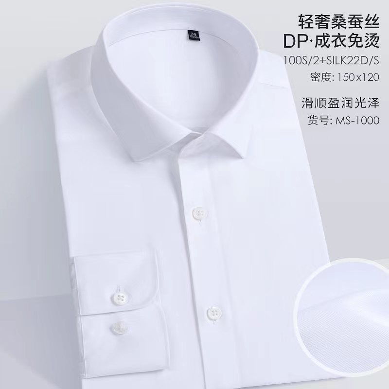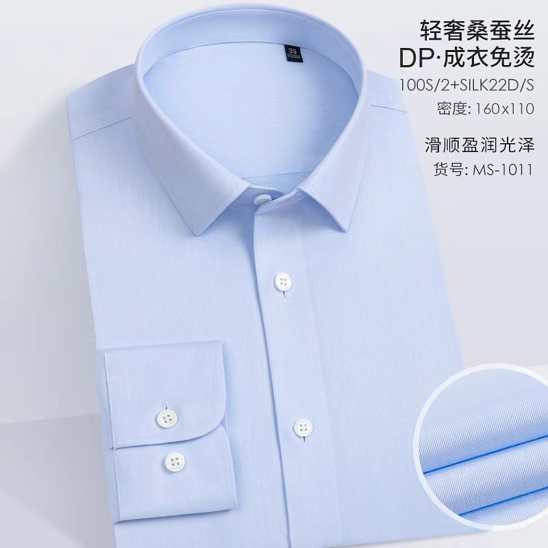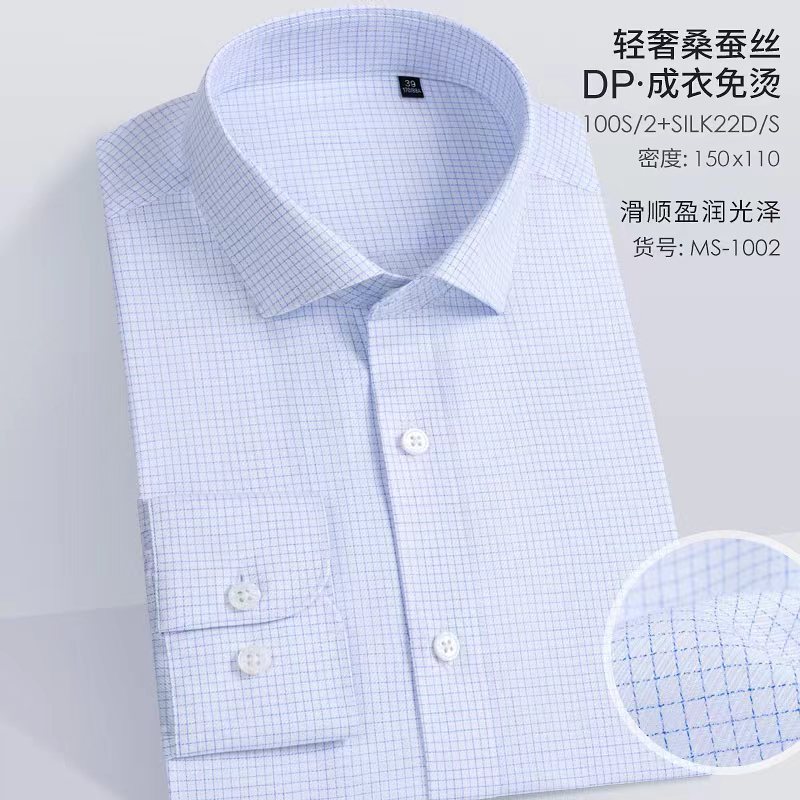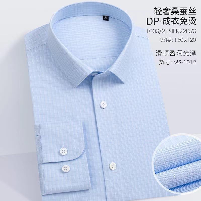 12% 실크 고급 가을 남성용 고급 긴팔 셔츠 실크 긴팔 셔츠 남성 셔츠 다림질 필요 없음