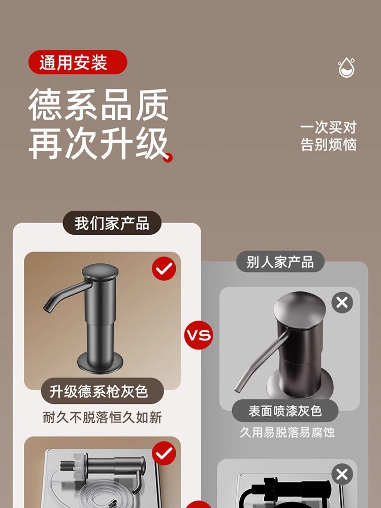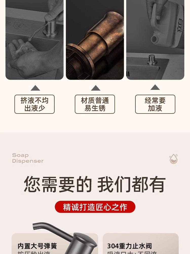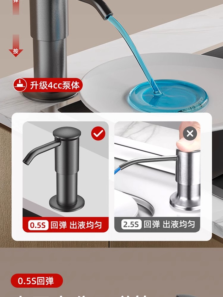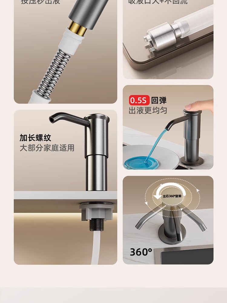 주방 싱크대 비누 디스펜서 세제 연장 튜브 식기 세척대 304 스테인리스 스틸 높이 조절 펌프 헤드 식기 세척대