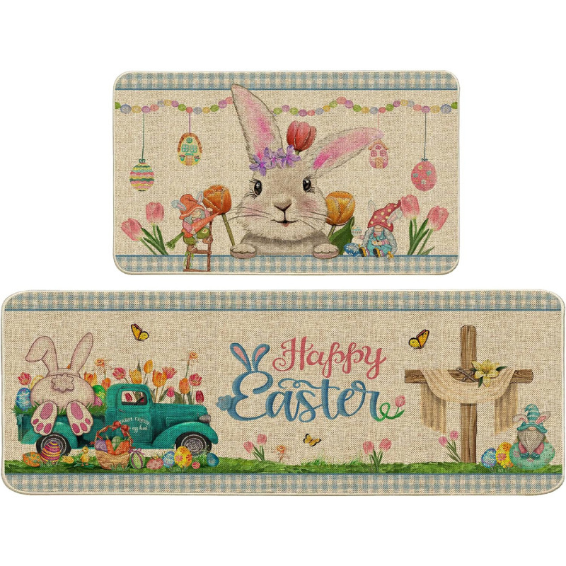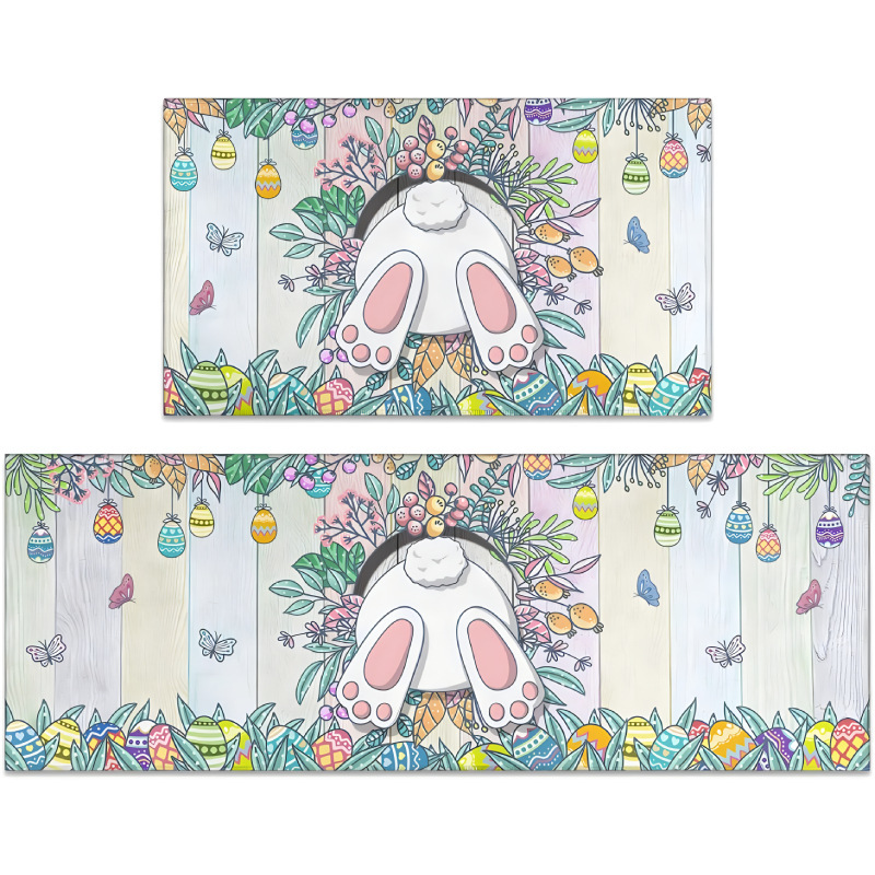 아마존 만화 토끼 주방 매트 2 피스 세트 흡수성 오일 흡수 얼룩 방지 바닥 매트 스트립 카펫 재고 도매스토어 가기