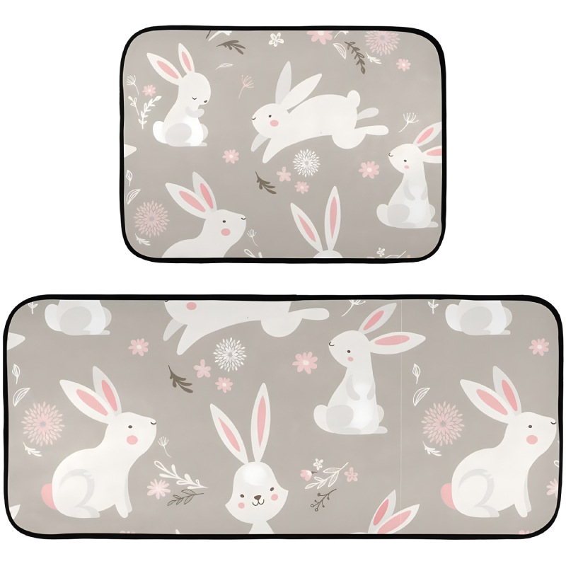 아마존 만화 토끼 주방 매트 2 피스 세트 흡수성 오일 흡수 얼룩 방지 바닥 매트 스트립 카펫 재고 도매