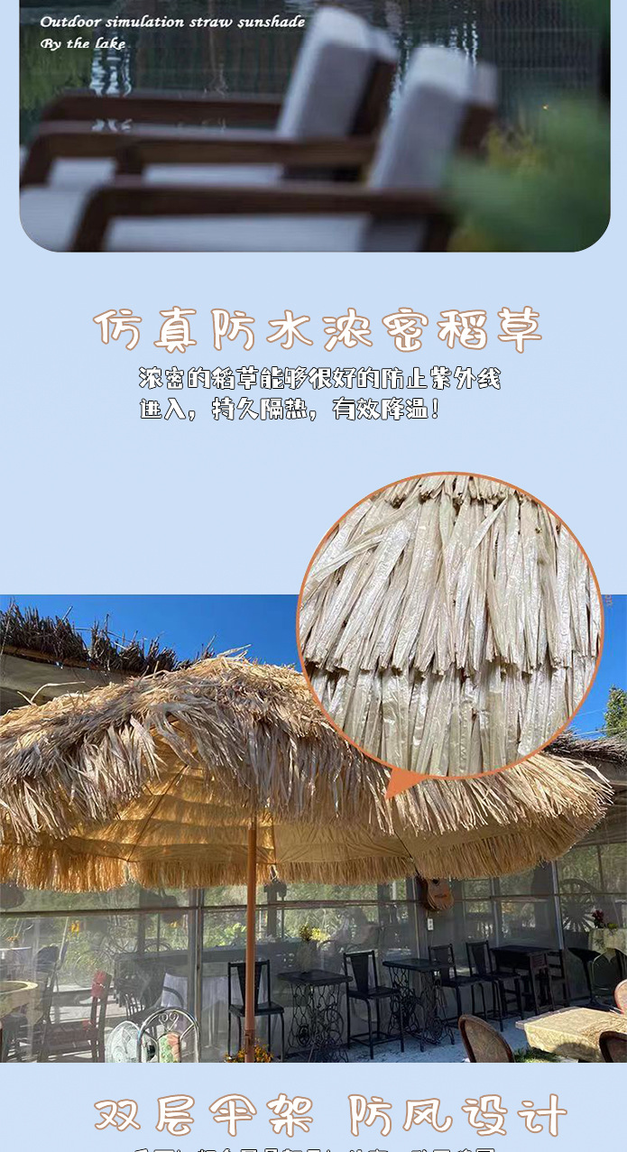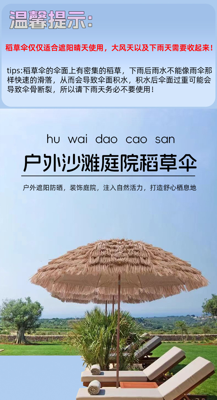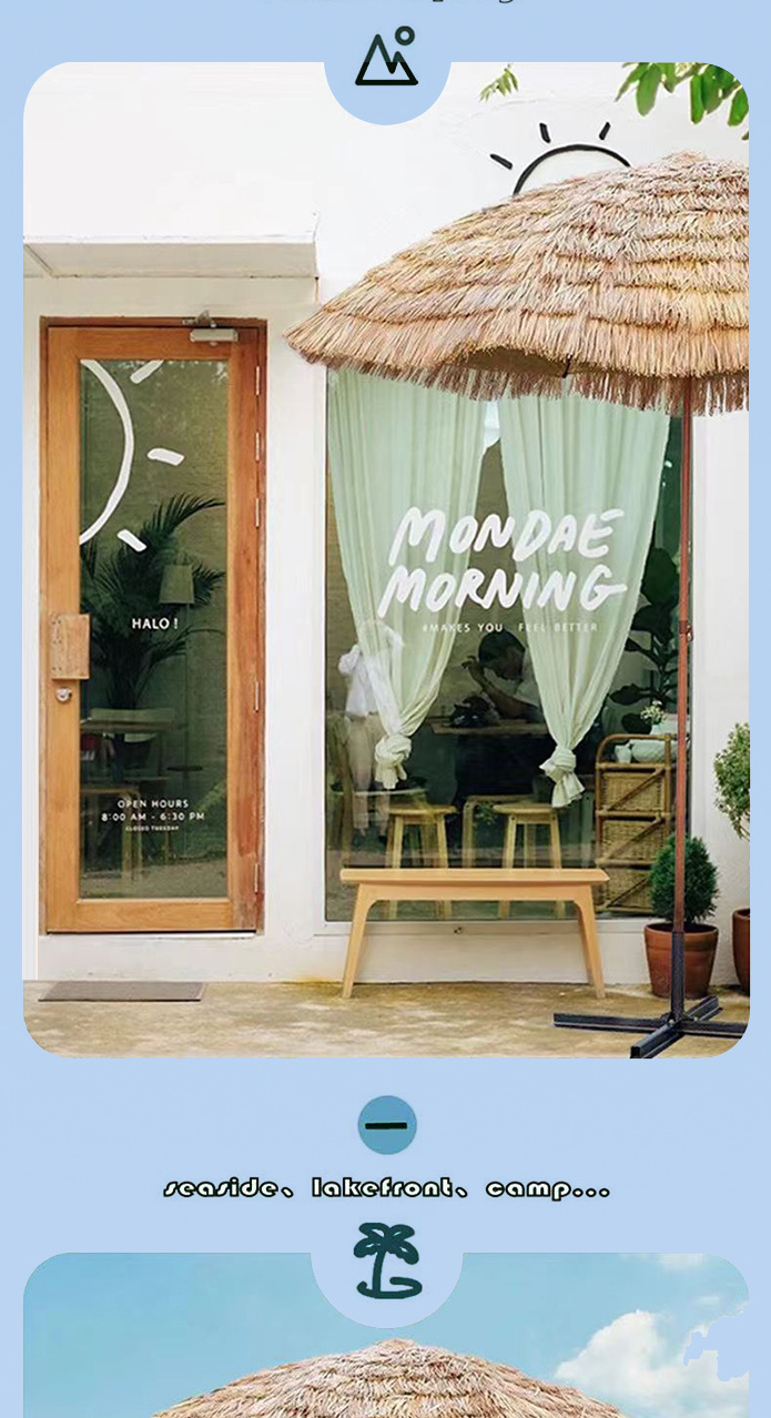 시뮬레이션 밀짚 우산 해변 캠핑 파라솔 해변 우산 야외 경치 좋은 홈스테이 안뜰 시장 노점 초가 우산스토어 가기
