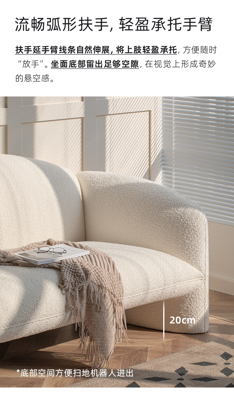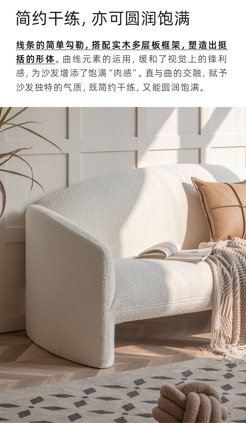 북유럽 양털 디자이너 패브릭 소파 작은 아파트 거실 2023 새로운 스타일 간단한 현대 작은 아파트