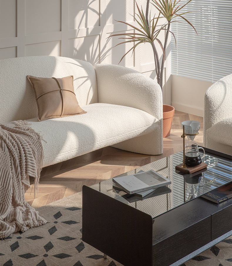 북유럽 양털 디자이너 패브릭 소파 작은 아파트 거실 2023 새로운 스타일 간단한 현대 작은 아파트스토어 가기