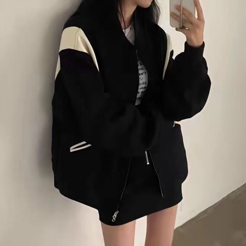 • ■■【기모 블랙】 배색 하라주쿠 스타일 야구 점퍼■■