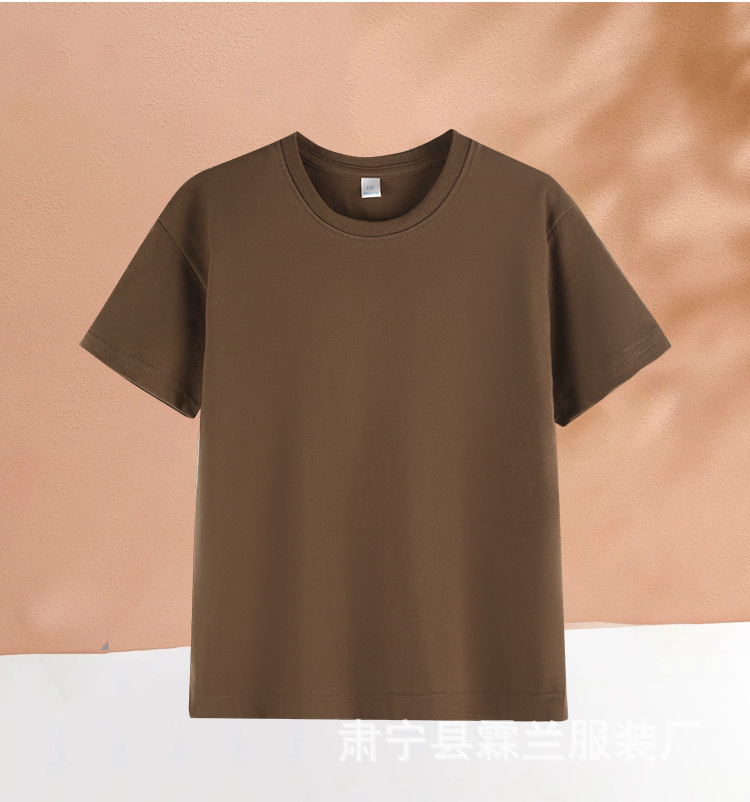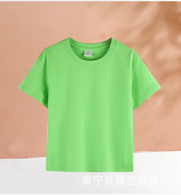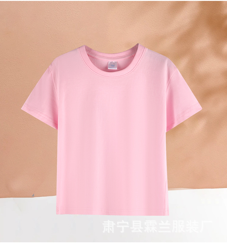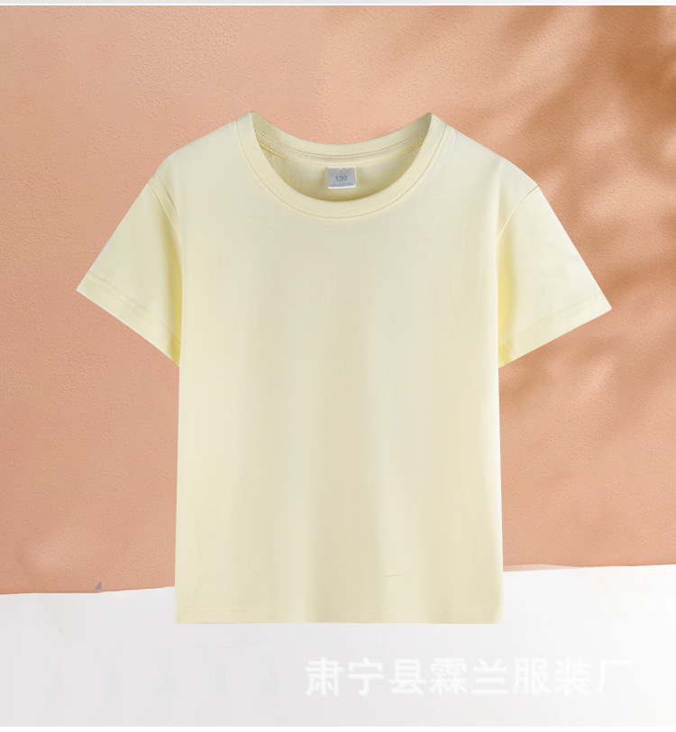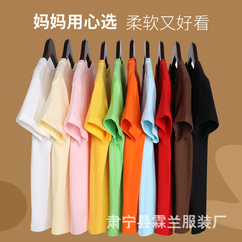 여름 180g 순수한면 아기 짧은 소매 중형 및 대형 어린이 단색 패션 티셔츠 유치원 클래스 의류 맞춤형 인쇄 사진 도매
