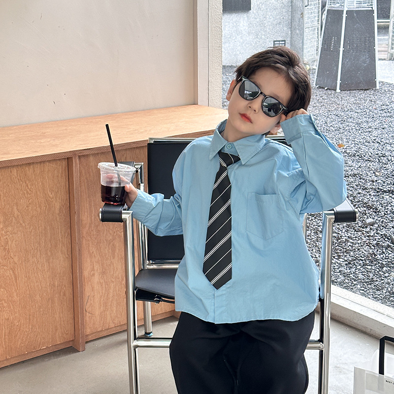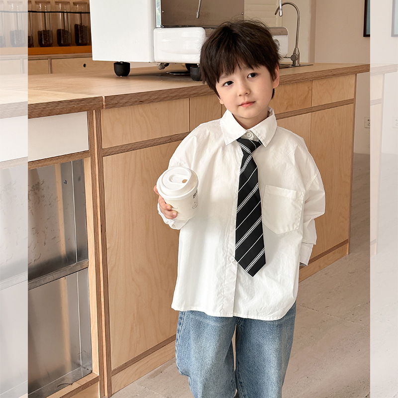 Aimo Beibei 어린이 넥타이 셔츠 소년 소녀 2024 봄 다목적 느슨한 옷깃 탑 아기 기질 셔츠스토어 가기