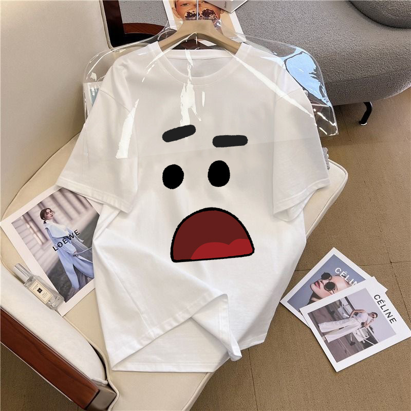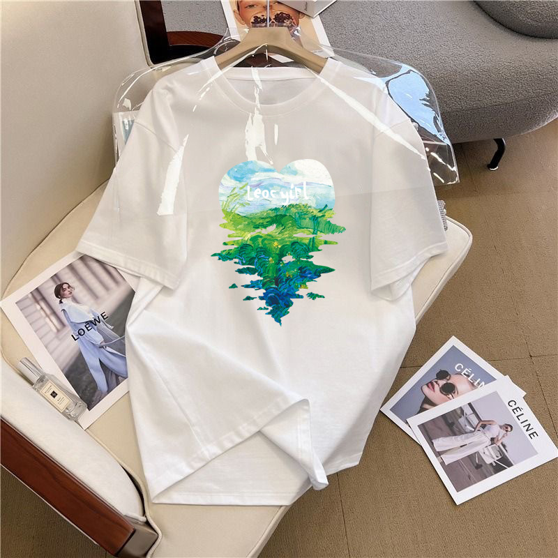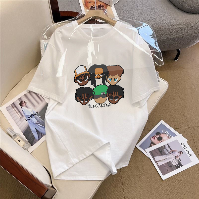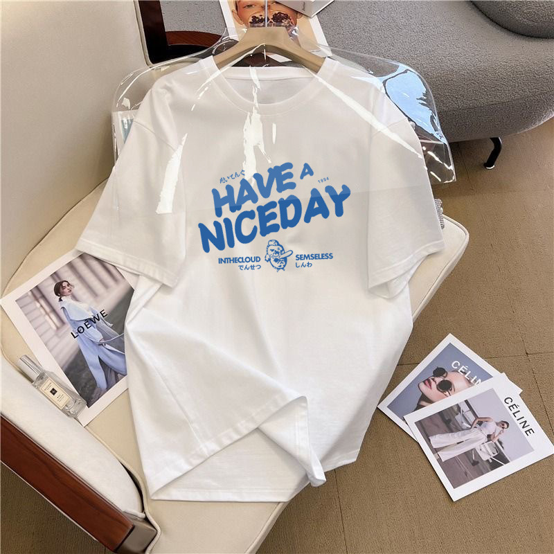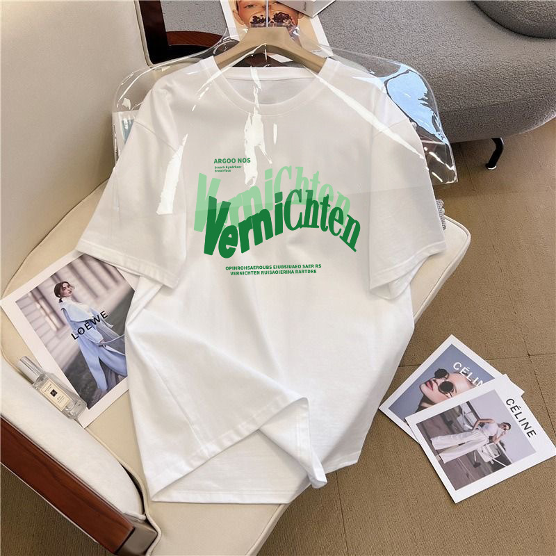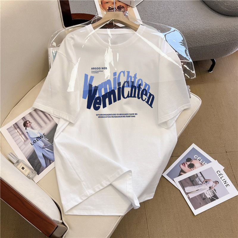 쇼트 슬리브 티셔츠 남성용 여름 새로운 패션 브랜드 아이스 실크 커플 탑 화이트 레터 라운드 넥 느슨한 올 매치 하프 슬리브스토어 가기