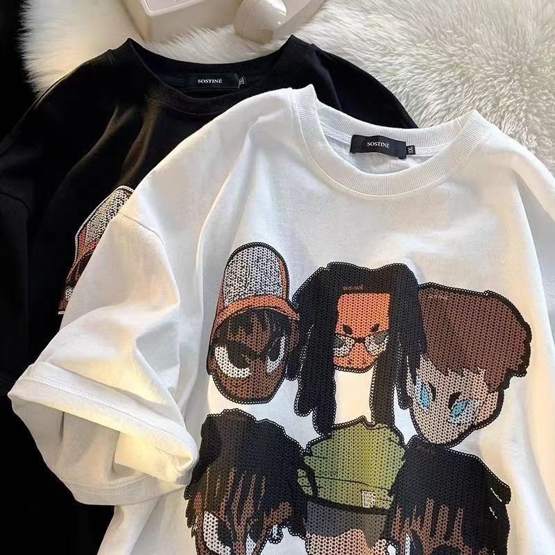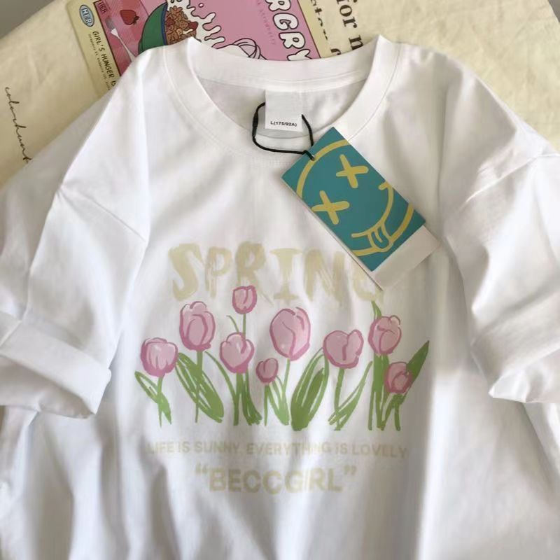 한국 스타일, 여름 새로운 올 매치 화이트 버밍 셔츠 반소매 여성 여름 반팔 티셔츠 남성 커플 같은 패션 착용스토어 가기