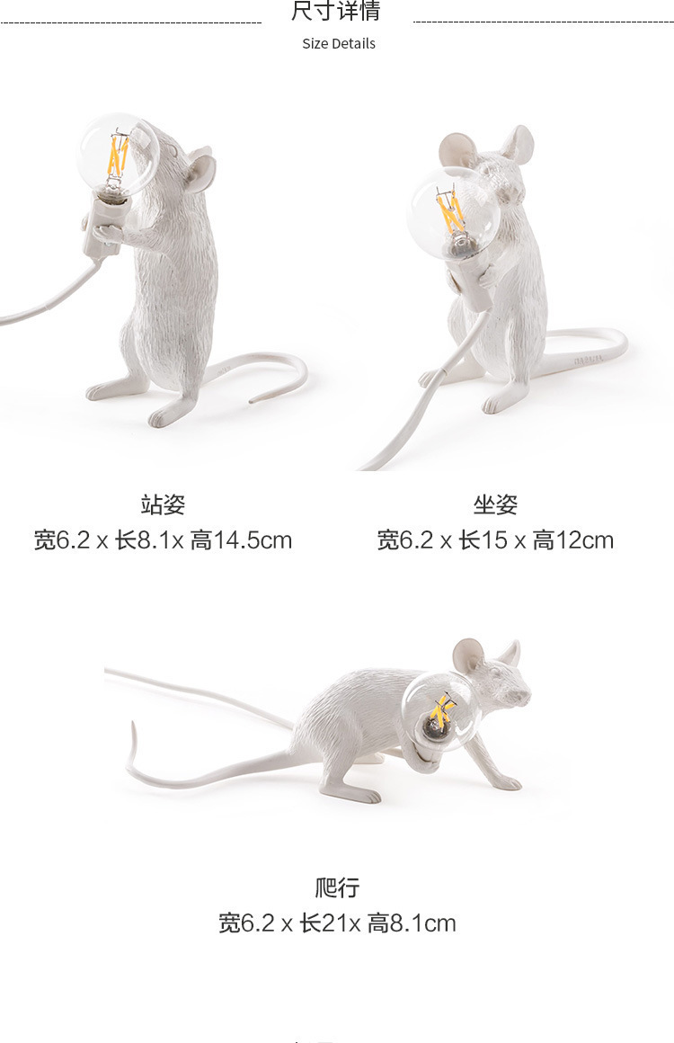 专注跨境爆款供货 :坐鼠 站鼠 卧鼠; 颜色分类:金色 黑色 白色;灯头为E12灯头,1.8米线; 包装尺寸23*23*14 重量0.4KG; 本店产品都不含税价格,需要开专票联系客服 工厂量批 支持定做各种规格线
