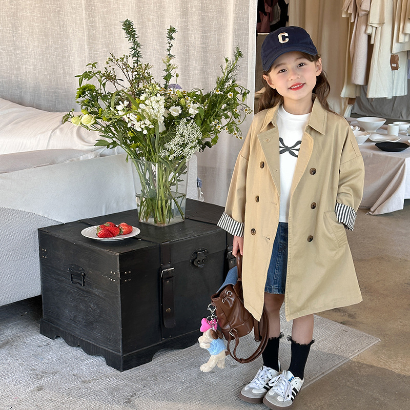 Emo Beibei 어린이 캐주얼 코트 봄 새로운 소녀 서양 스타일 영국 스타일 중장 코트 트렌디 코트스토어 가기