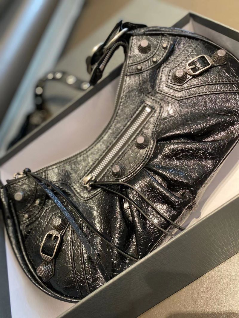 2024 새로운 정품 가죽 오토바이 가방 겨드랑이 가방 리벳 술 3 대 1 1 1 월 치아 가방 주름 어깨 크로스 바디 여성용 가방스토어 가기
