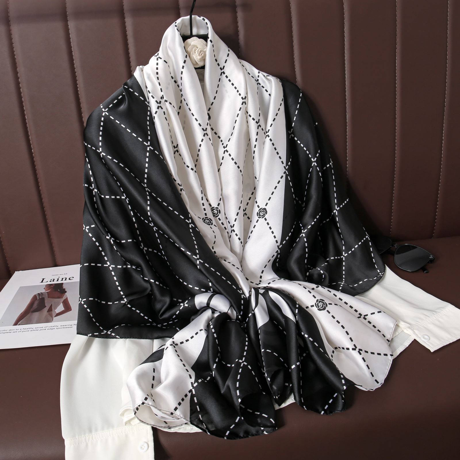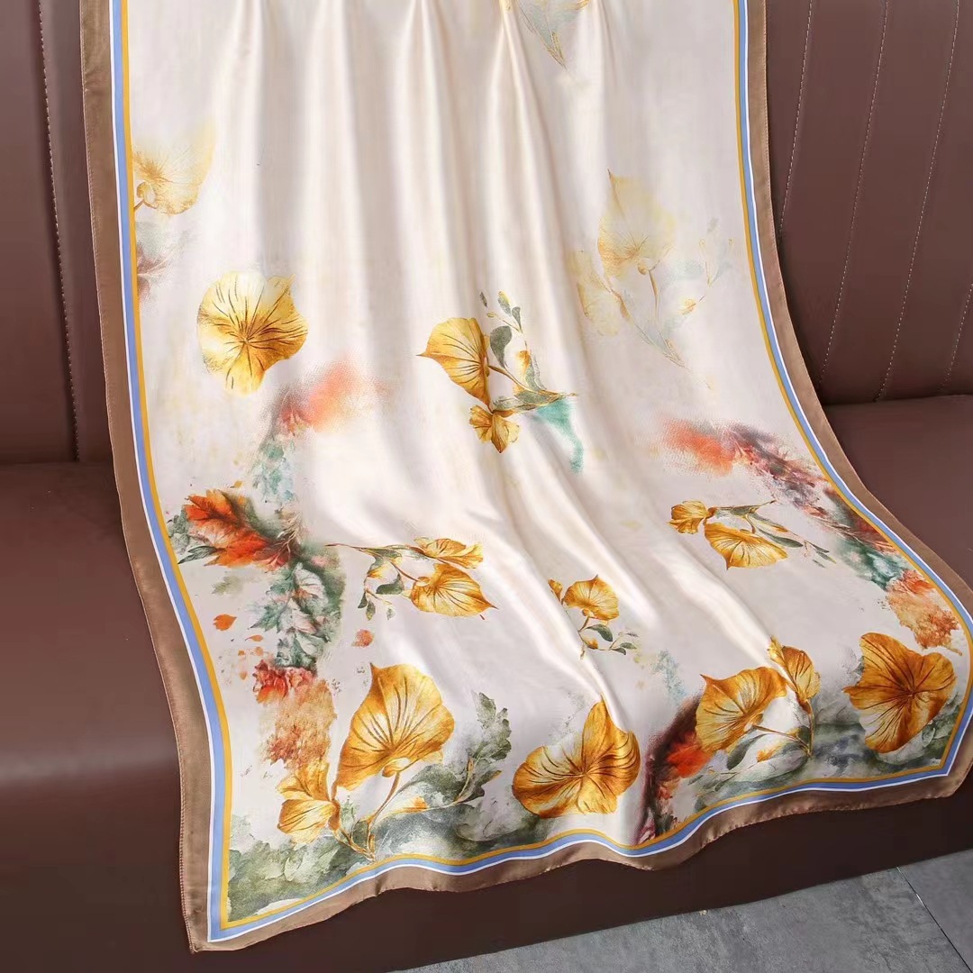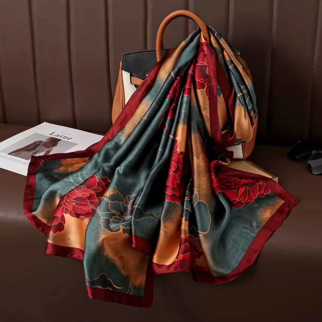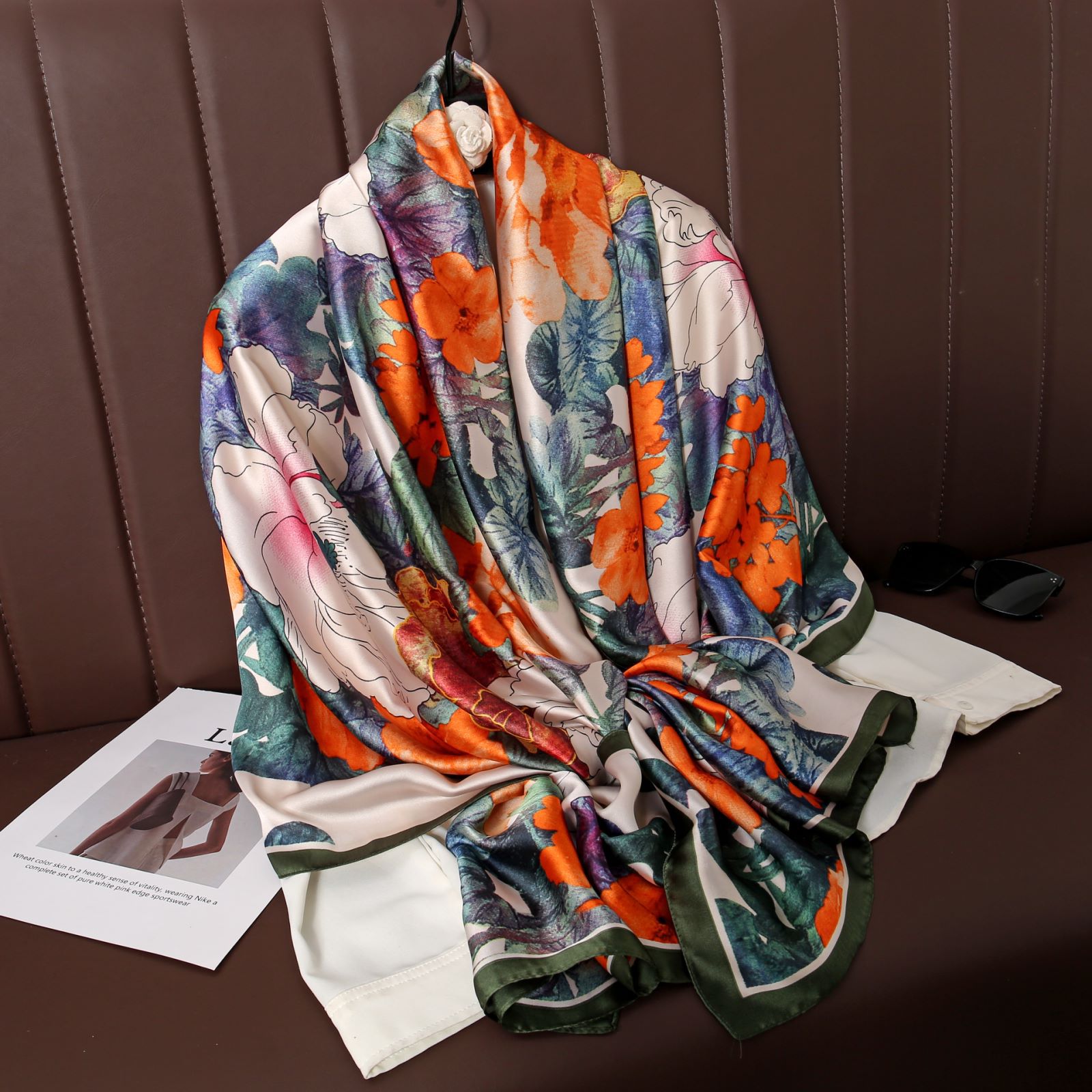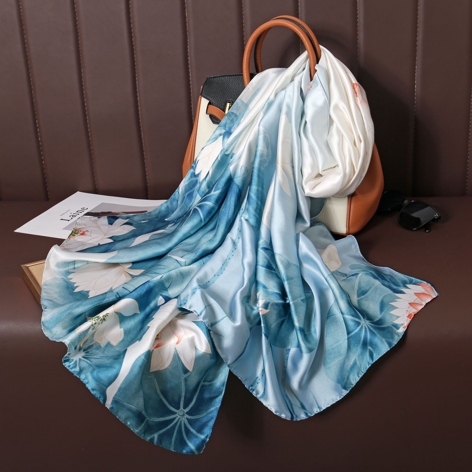 한국식 예술 여성 청소년 봄과 여름 얇은 여행 선 스크린 스카프 식물 꽃 인공 실크 긴 스카프스토어 가기