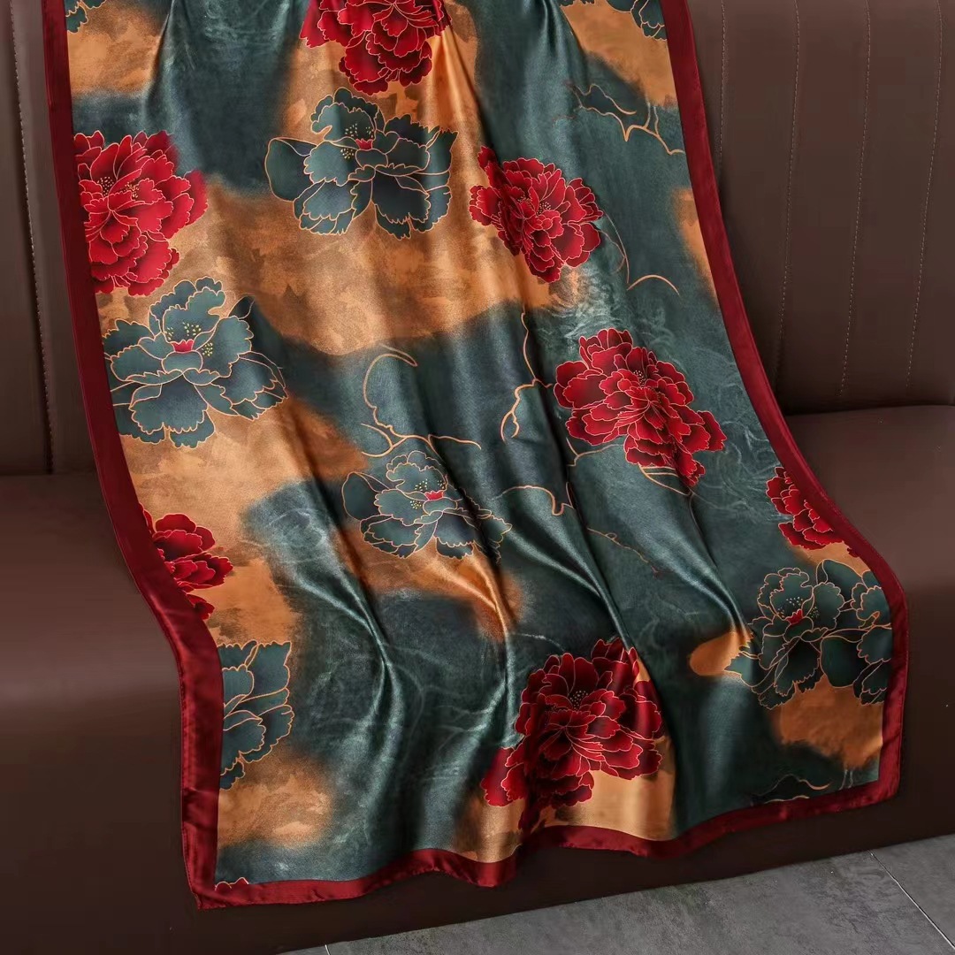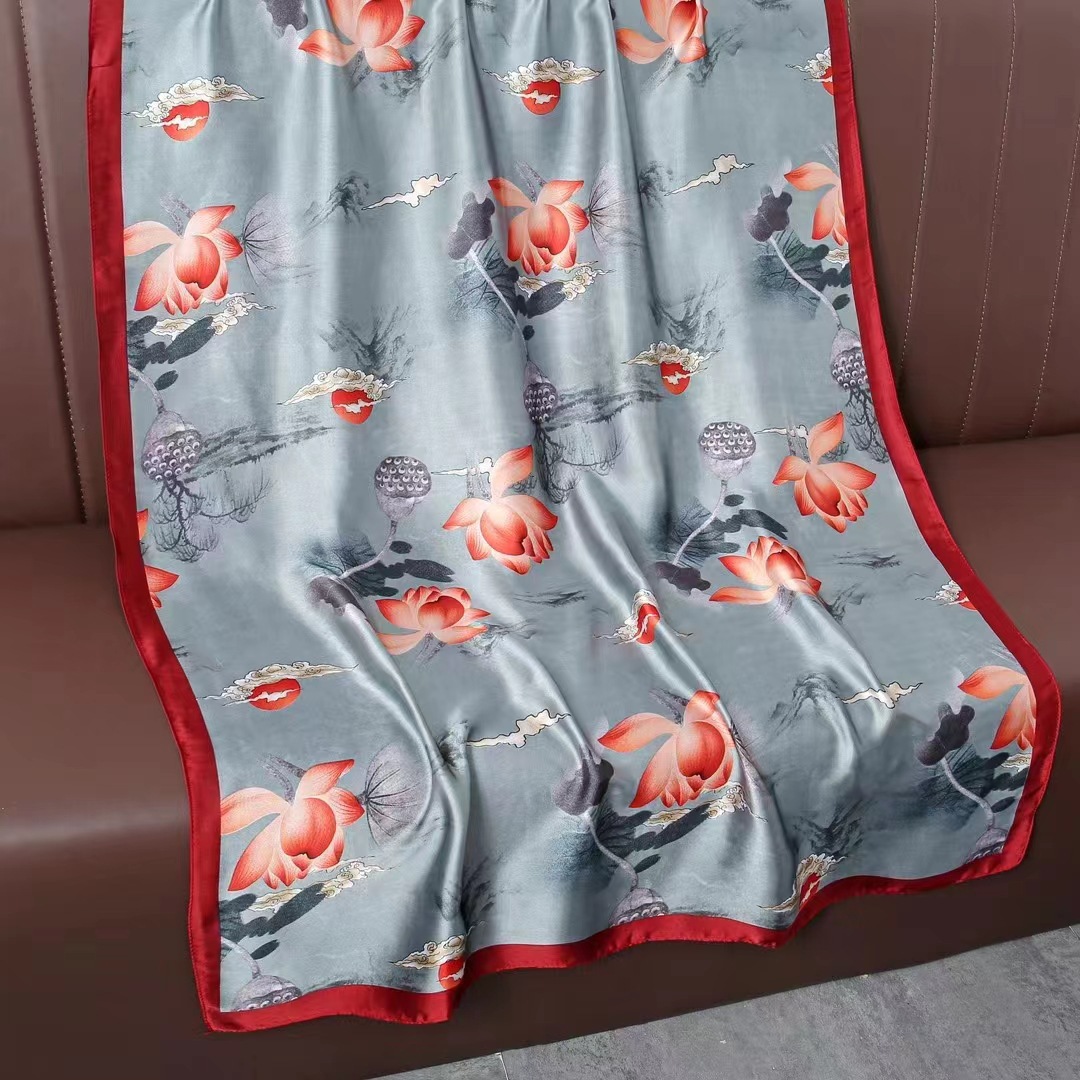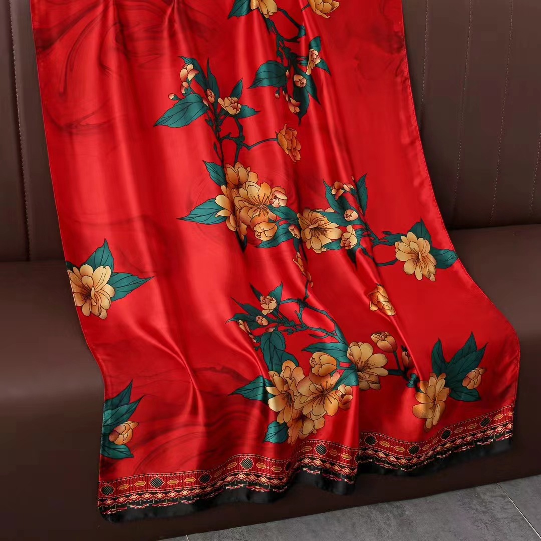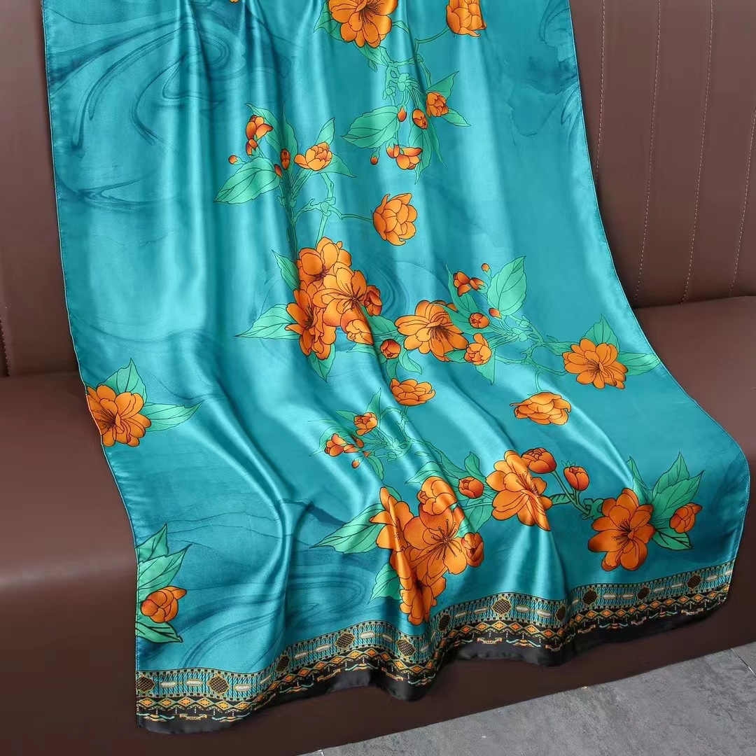 한국식 예술 여성 청소년 봄과 여름 얇은 여행 선 스크린 스카프 식물 꽃 인공 실크 긴 스카프