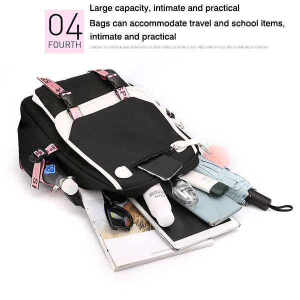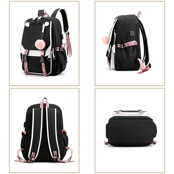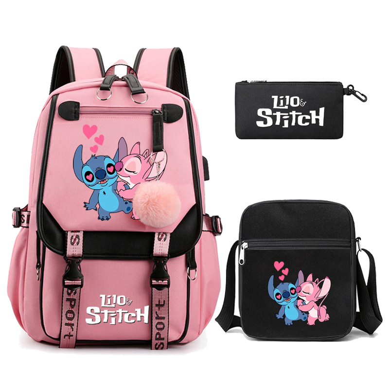 귀여운 만화 패턴 인쇄 배낭 십대 학생 책가방 세 조각 연필 케이스 메신저 가방