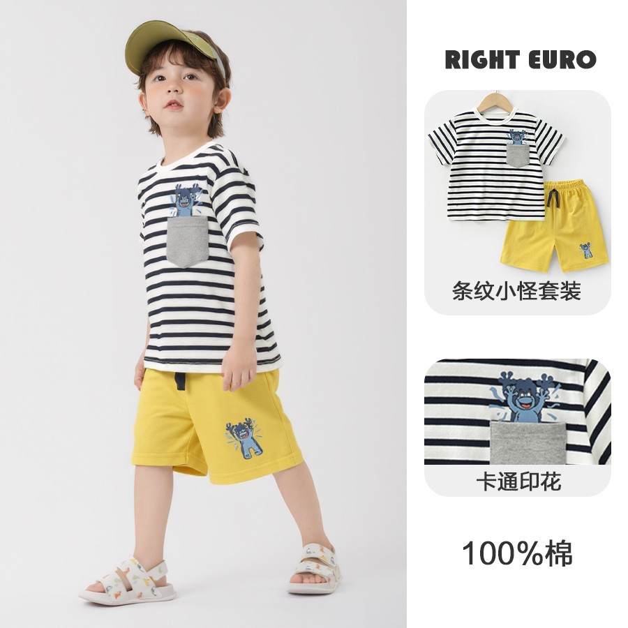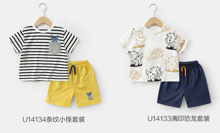 남학생 반소매 스포츠 세트 오른쪽 유럽 여름 새 여름 아동복 아기 어린이 1 세 3 조 U14133스토어 가기