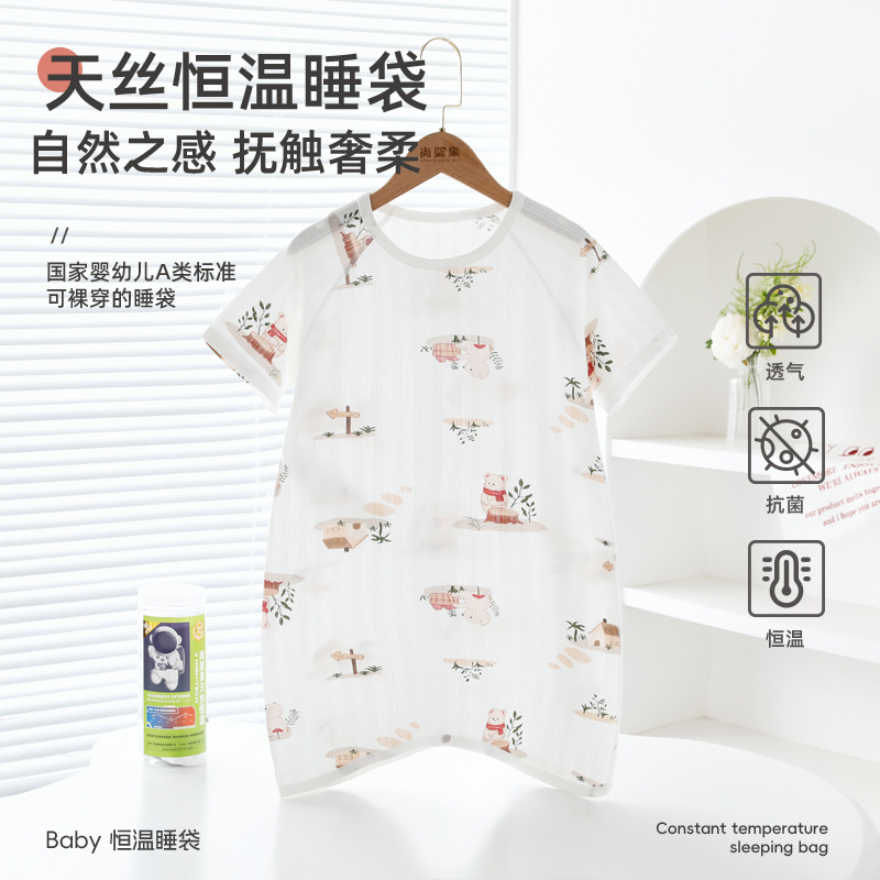아기 잠옷 여름 반팔 잠옷 신생아 안티 킥 퀼트 어린이 반 차가운 집 옷 아기 일정한 온도 침낭스토어 가기