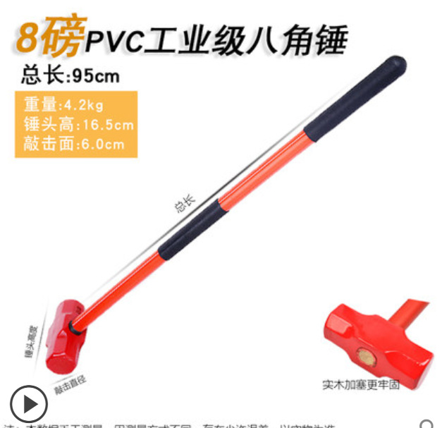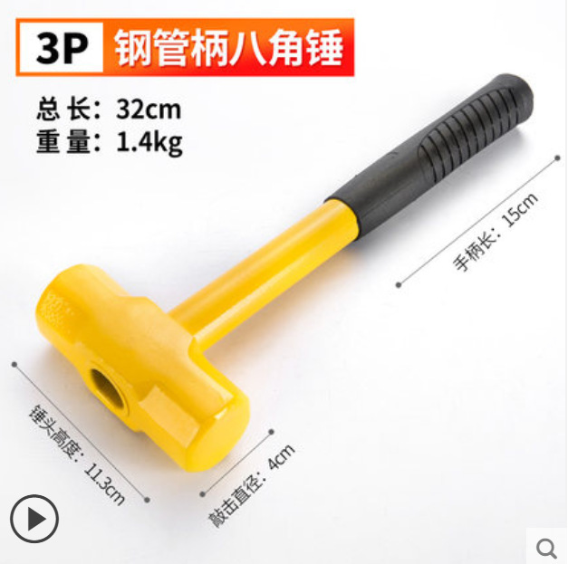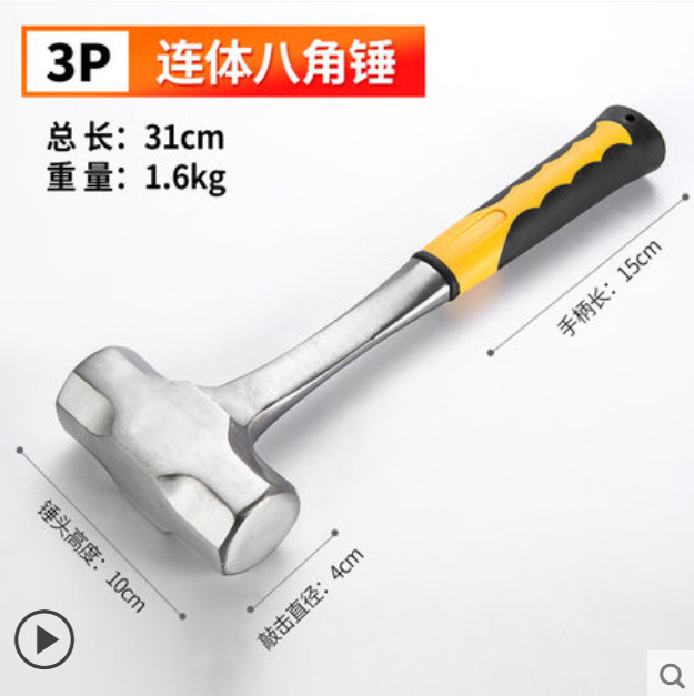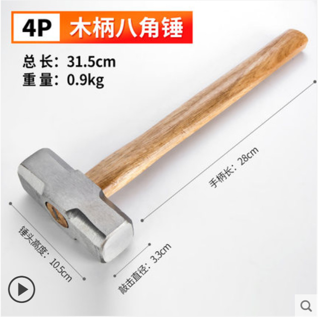 팔각형 망치 사각형 머리 나무 손잡이 무거운 의무 벽 파괴 망치 충격 방지 석조 철 망치 건설 현장스토어 가기