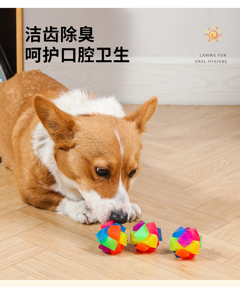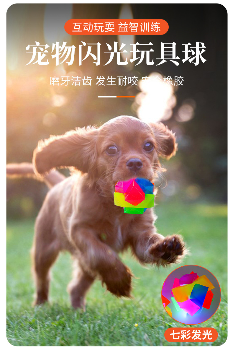 새로운 빛나는 애완 동물 장난감 공 tpr 솔리드 플래시 탄성 씹는 공 광장 개 대화 형 애완 동물 용품