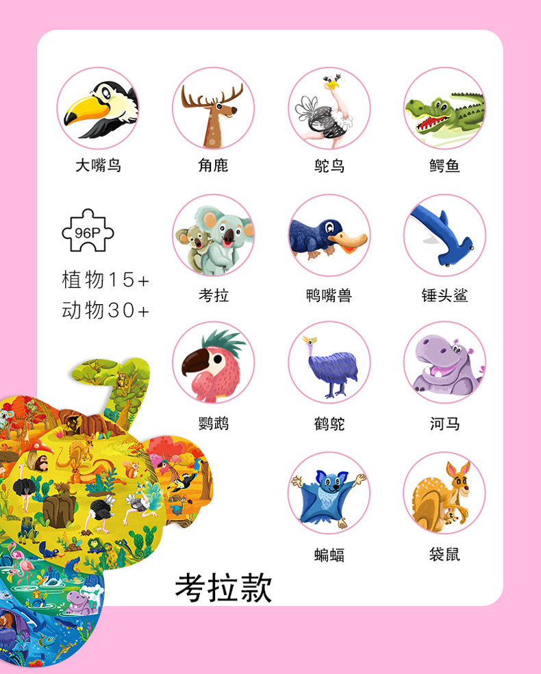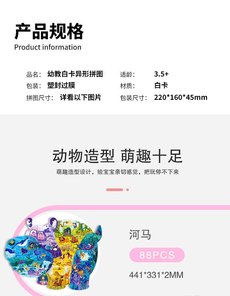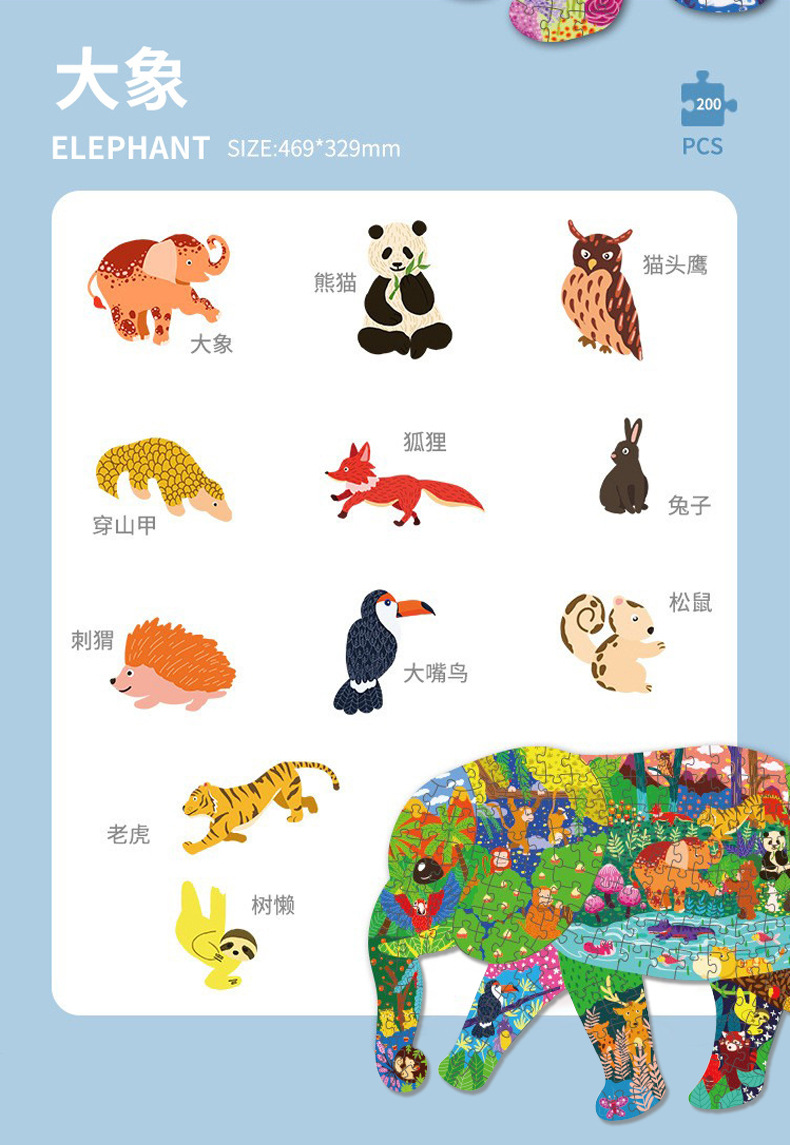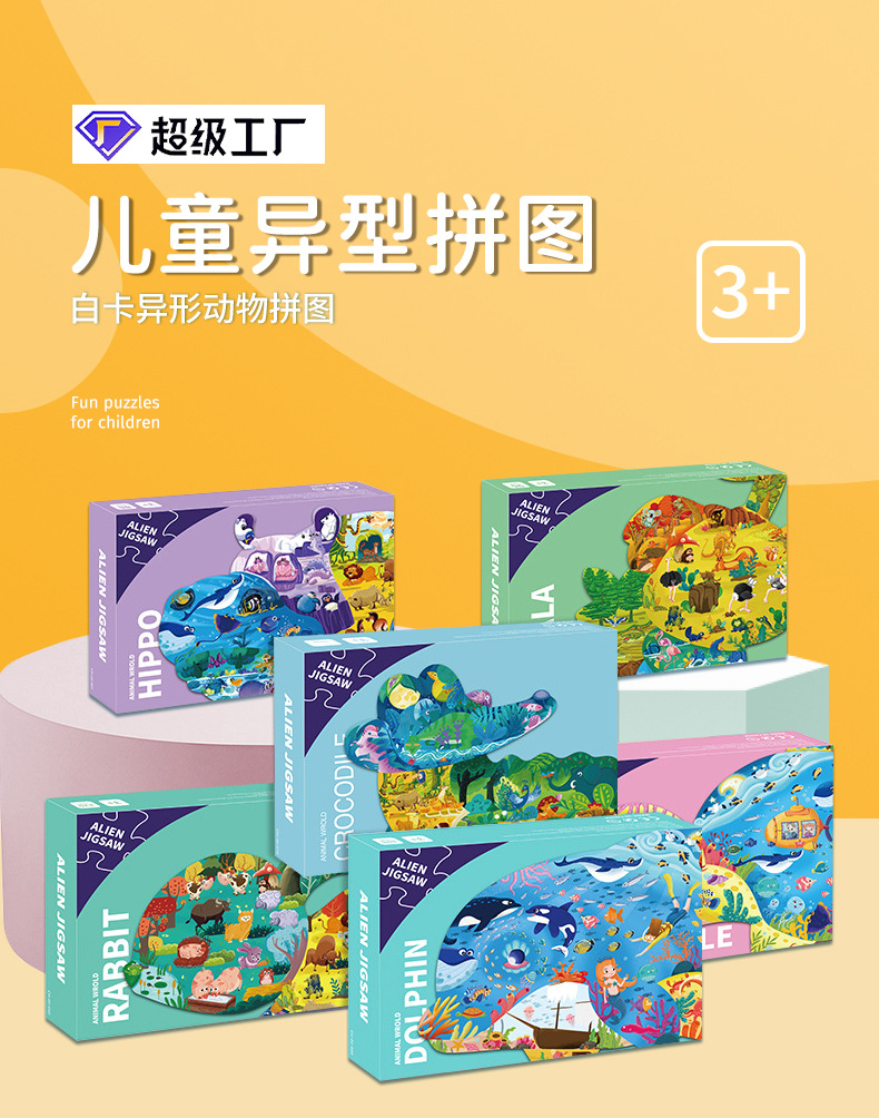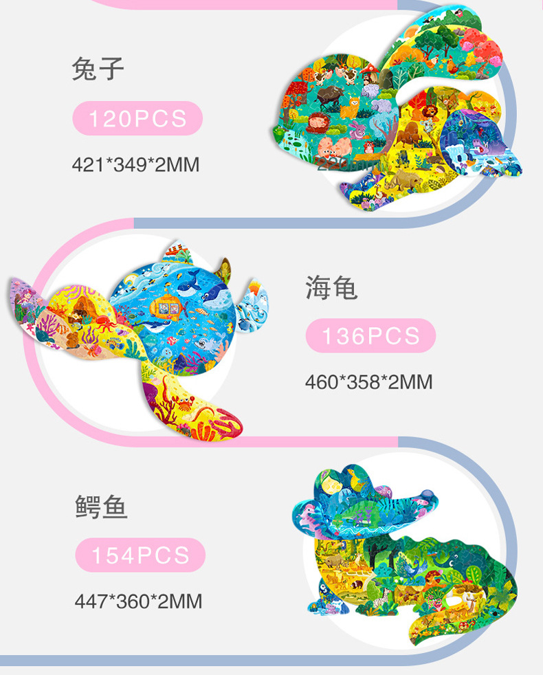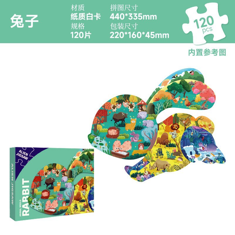 인기 특별한 모양의 동물 어린이 교육용 퍼즐 3-6세 만화 평면 퍼즐 종이 장난감 선물 제조업체스토어 가기