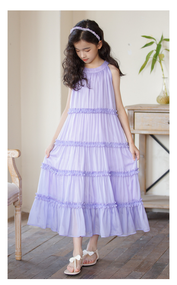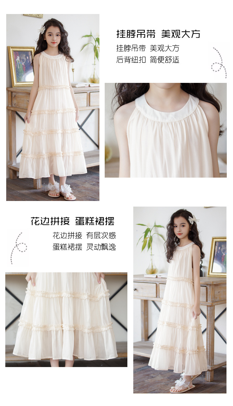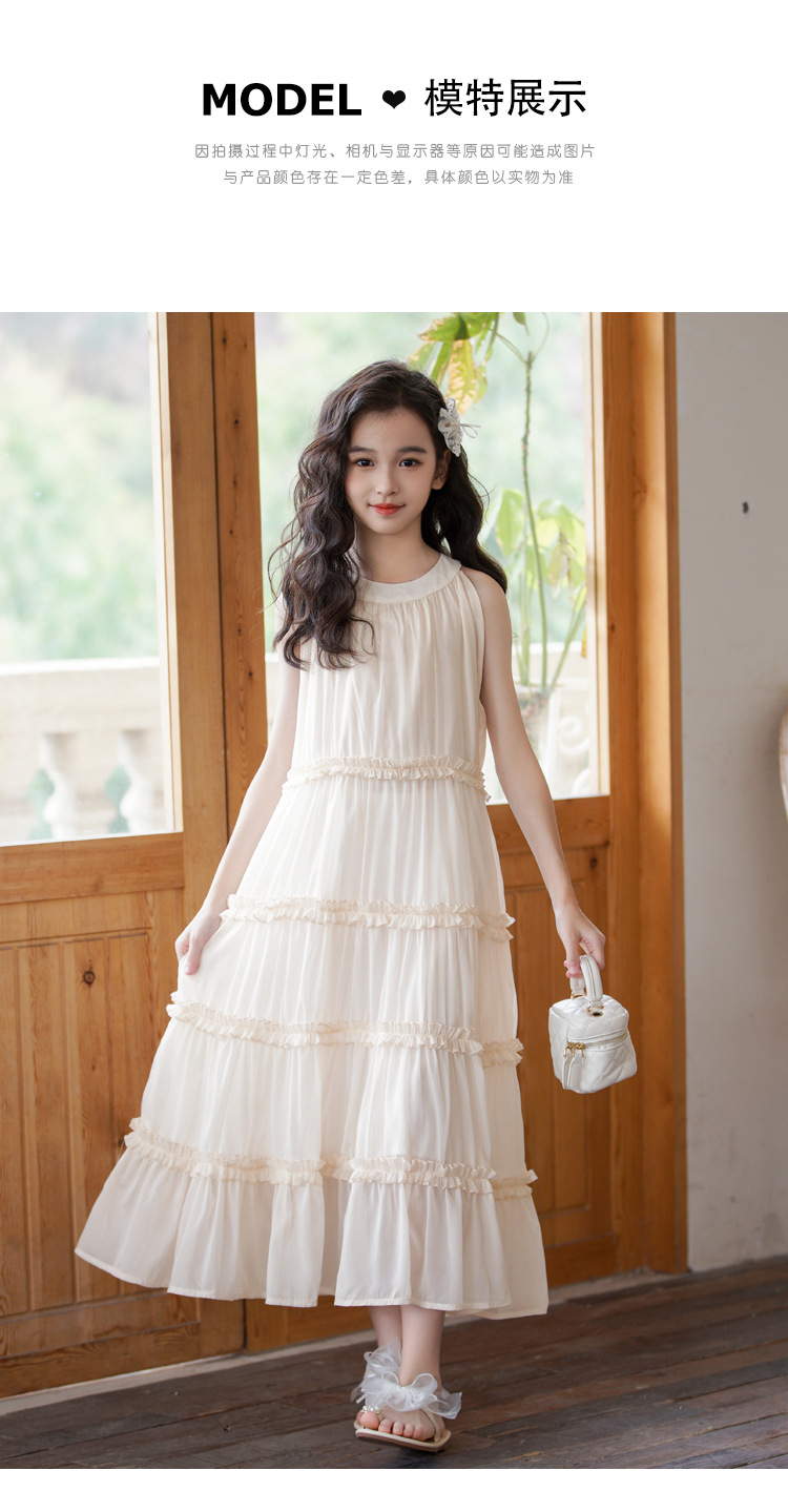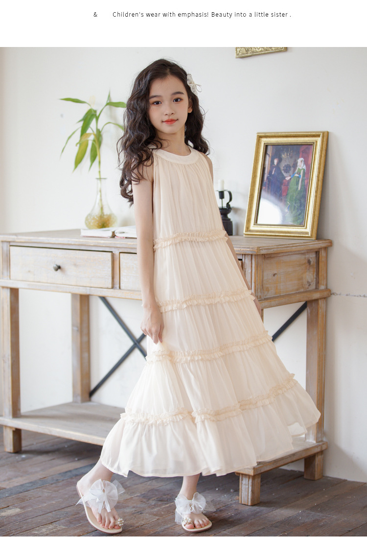 소녀 원피스 여름 민소매 서스펜더 긴 치마 2024 새로운 미디어와 큰 어린이 소녀 서양식 쉬폰 스커트스토어 가기