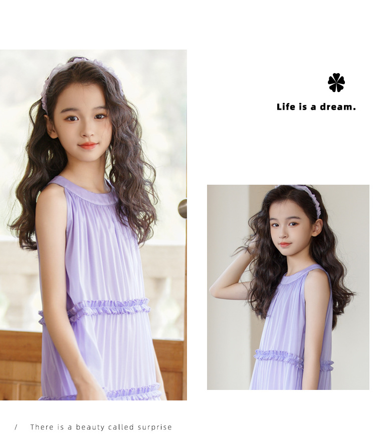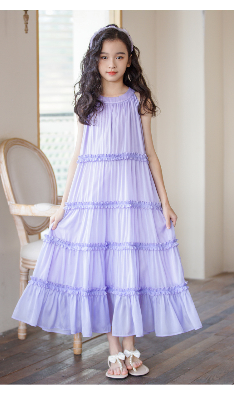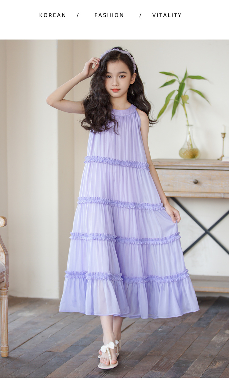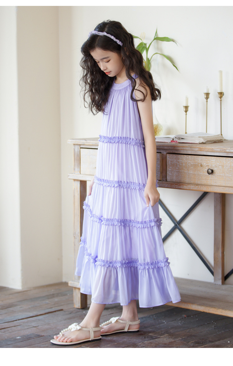 소녀 원피스 여름 민소매 서스펜더 긴 치마 2024 새로운 미디어와 큰 어린이 소녀 서양식 쉬폰 스커트스토어 가기