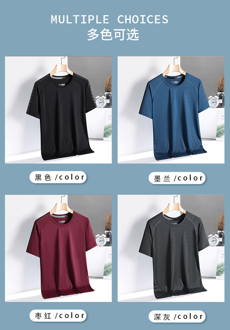 무료 배송 스포츠 반팔 티셔츠 남성 여름 얇은 통기성 빠른 건조 옷 피트니스 야외 달리기 아이스 실크 티셔츠 사업