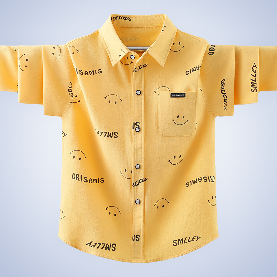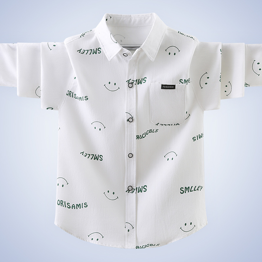 남학생 셔츠 긴팔 어린이 봄 셔츠 한국식 중형 및 대형 어린이 봄과 가을 2024 새 긴팔 셔츠 잘 생긴스토어 가기