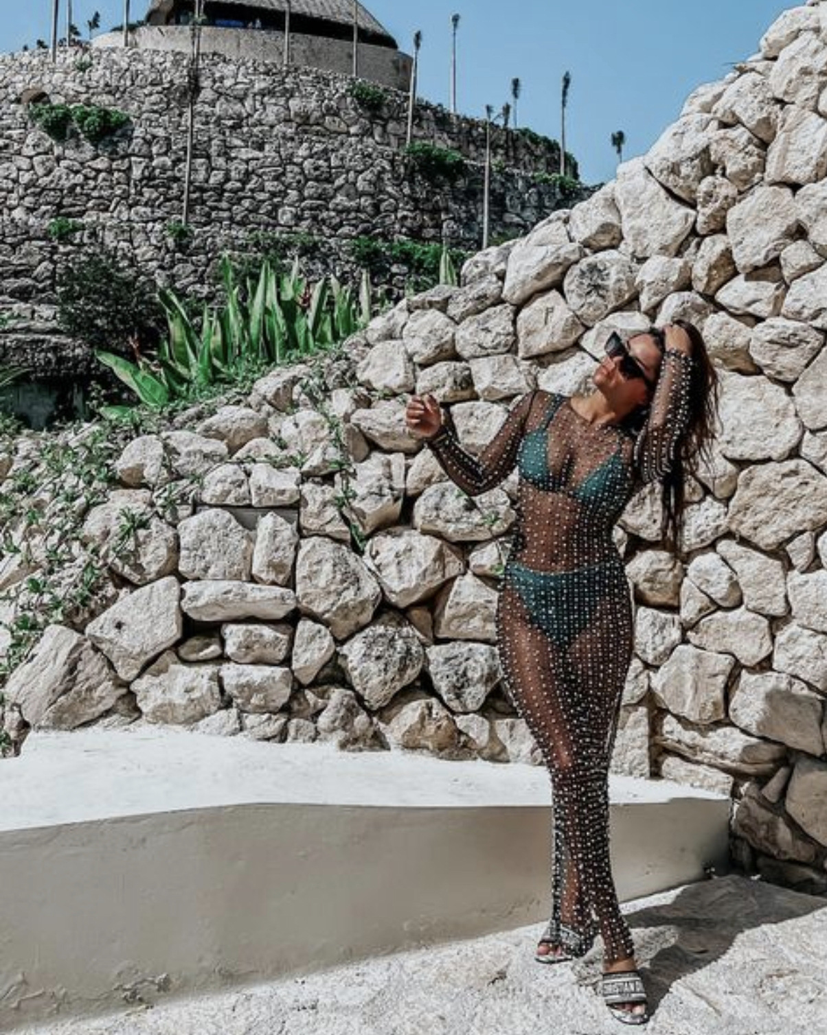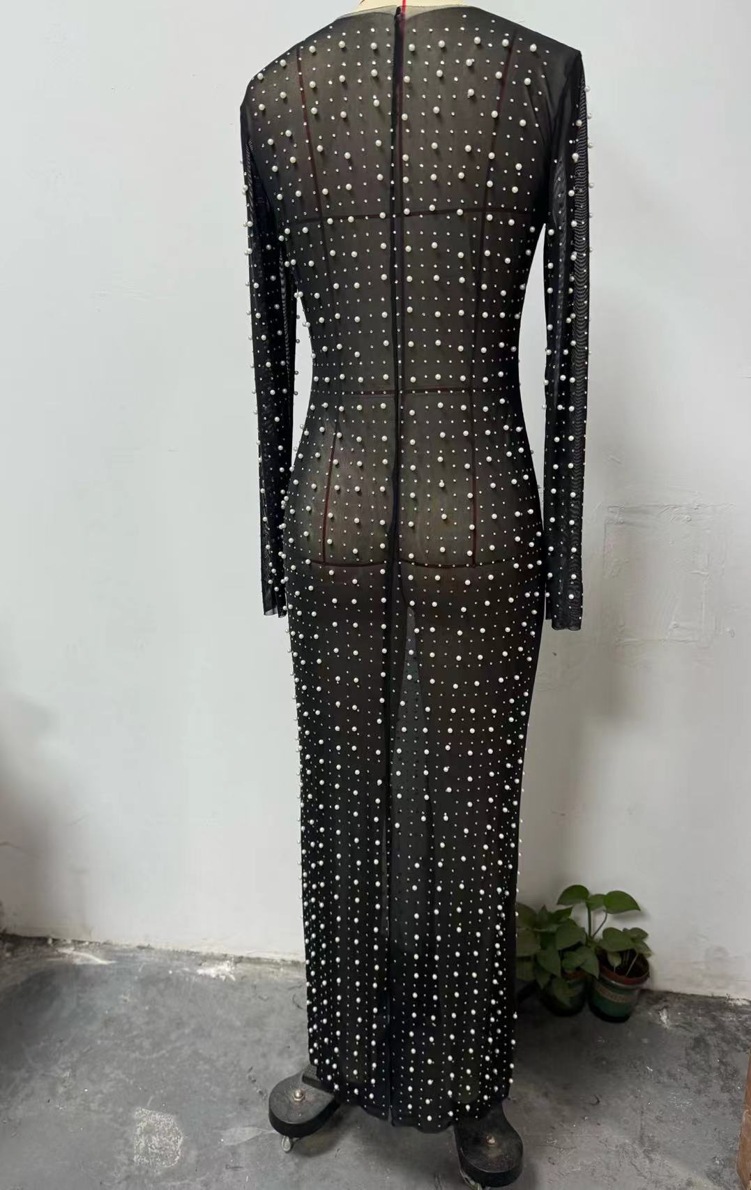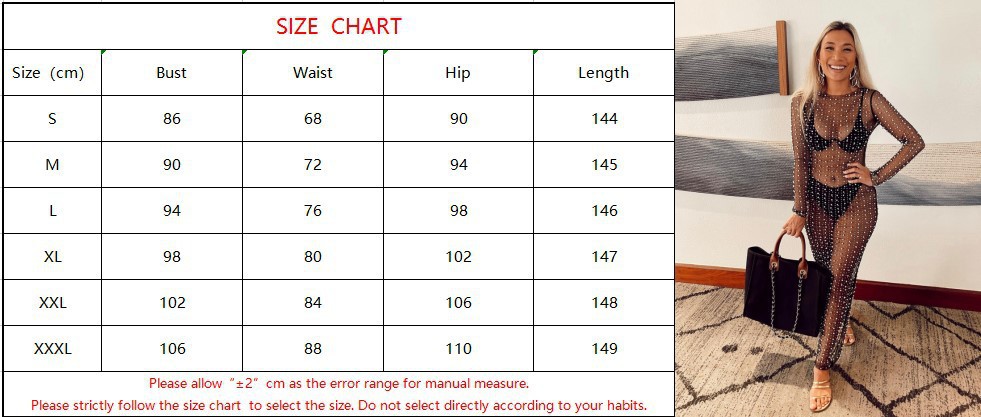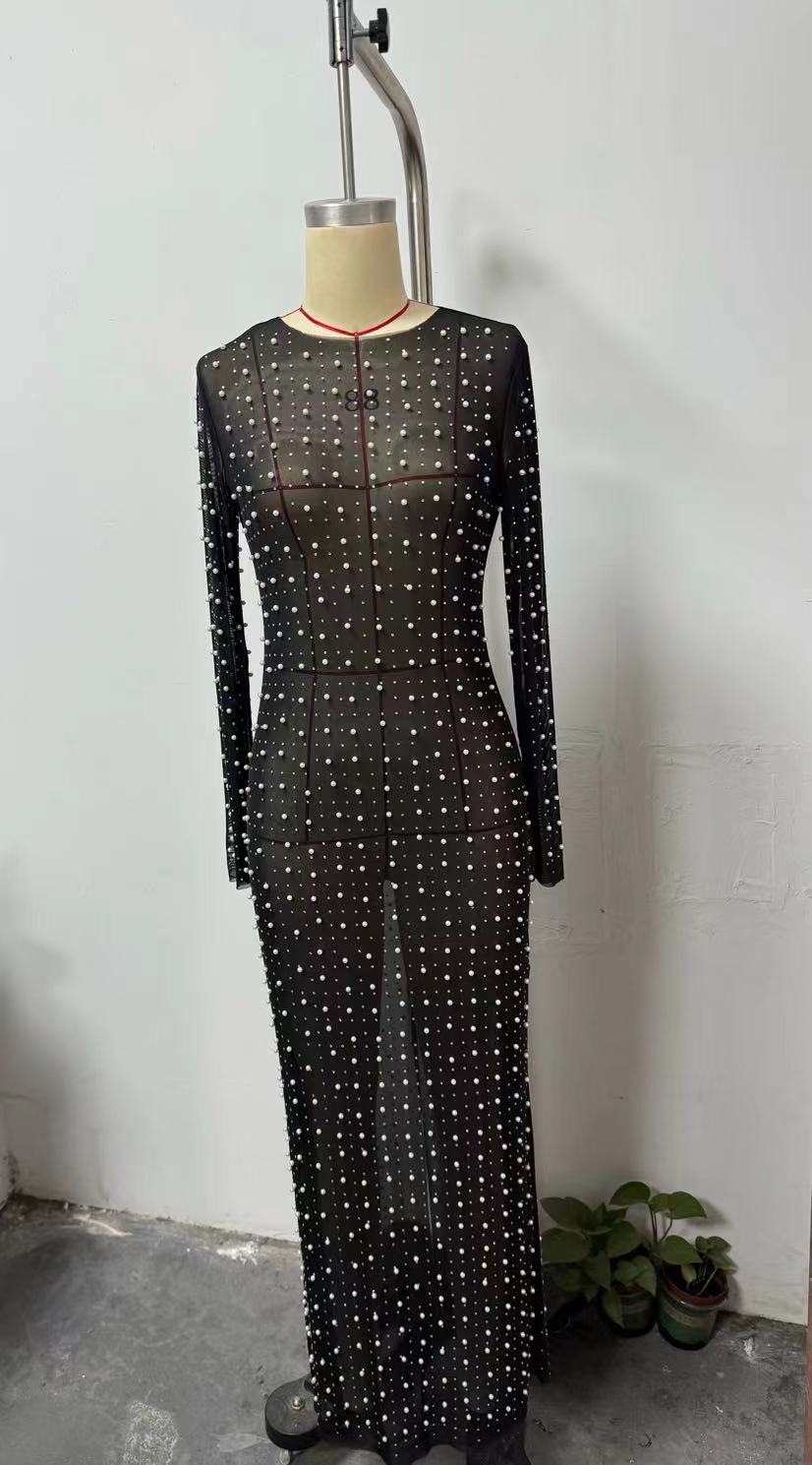 2022 유럽과 미국 대외 무역 새로운 아마존 베스트 셀러 패션 섹시한 네일 비즈 핫 드릴링 블라우스 메쉬 긴 소매 원피스