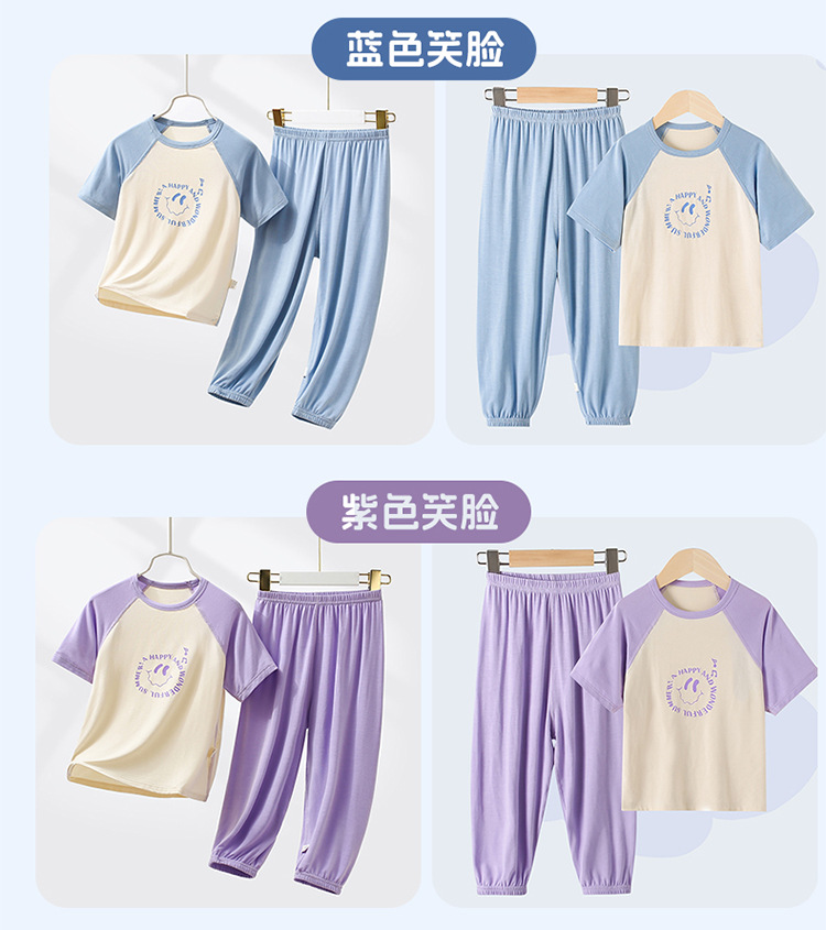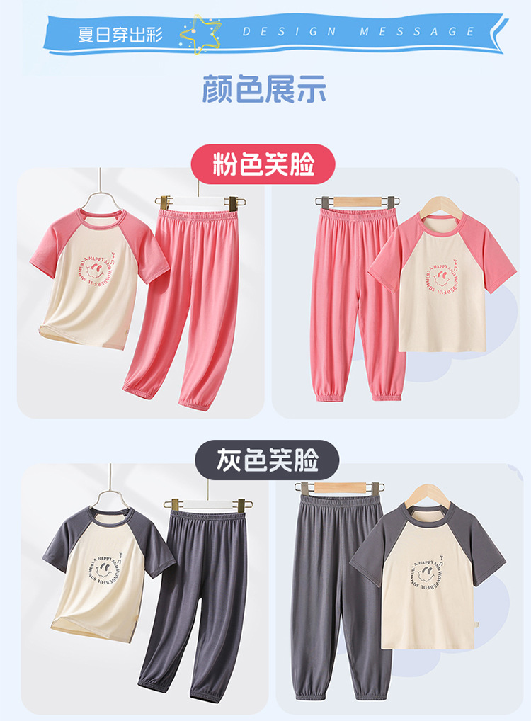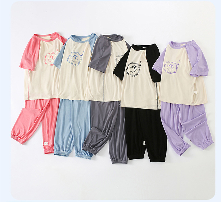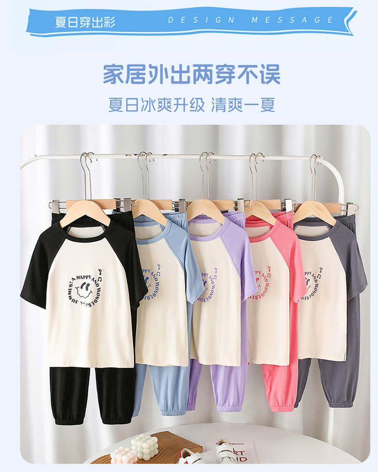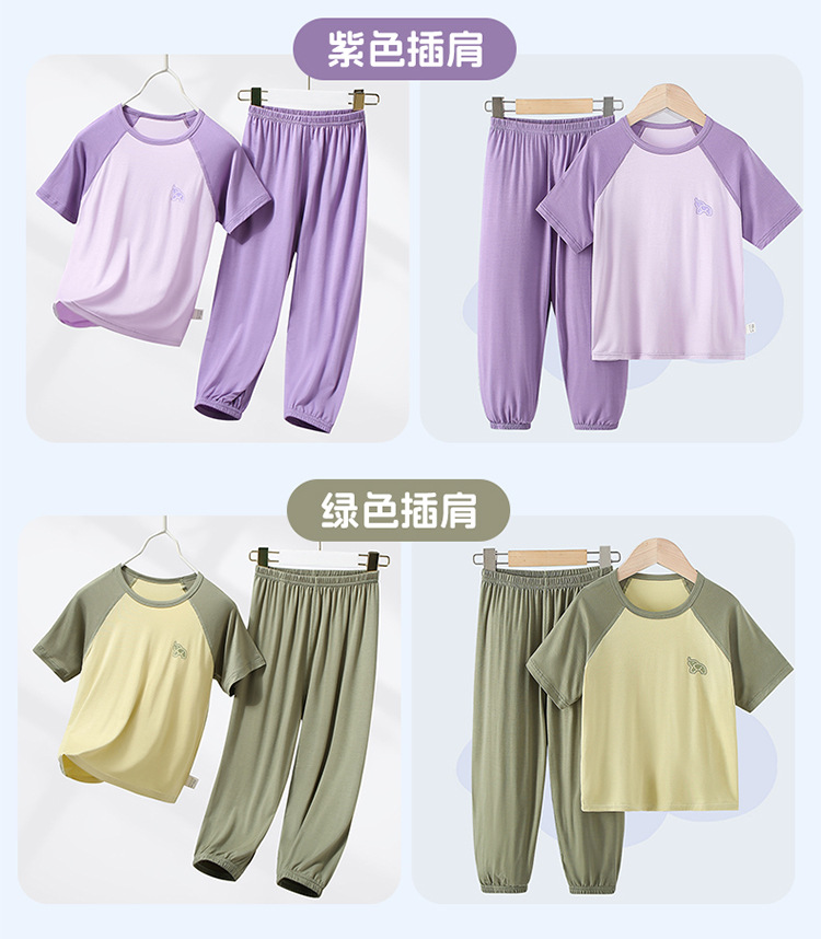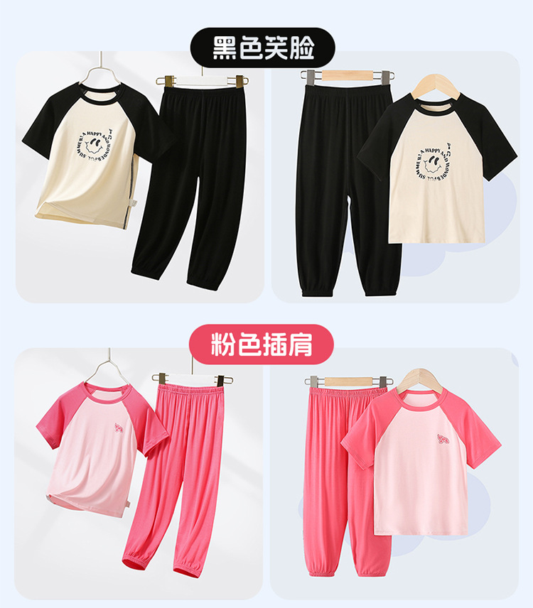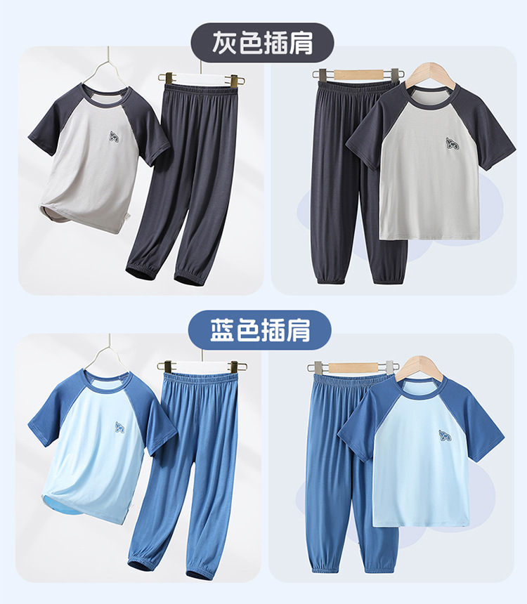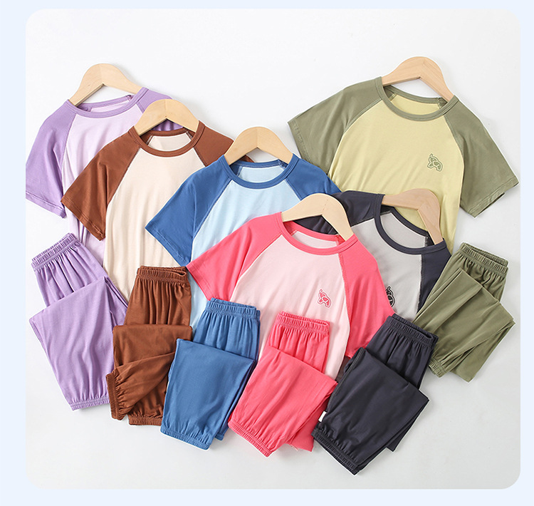 부모-자식 얇은 홈웨어 클래스 여름 모달 짧은 소매 세트 중형 및 대형 어린이 에어컨 옷 파자마 여름 바지