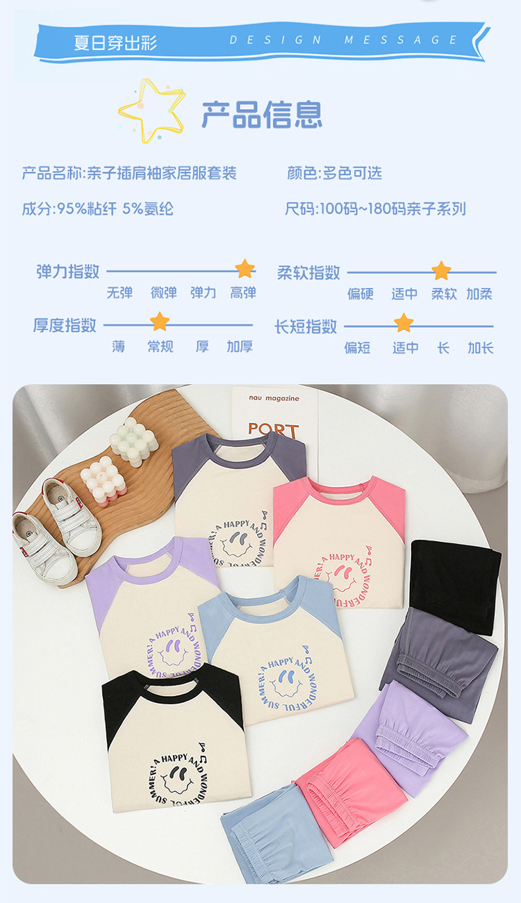 부모-자식 얇은 홈웨어 클래스 여름 모달 짧은 소매 세트 중형 및 대형 어린이 에어컨 옷 파자마 여름 바지스토어 가기