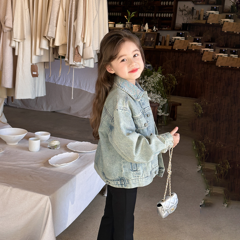 Emo Beibei 어린이 한국 스타일 느슨한 유행 재킷 탑 봄 새로운 소년과 소녀 캐주얼 데님 재킷스토어 가기