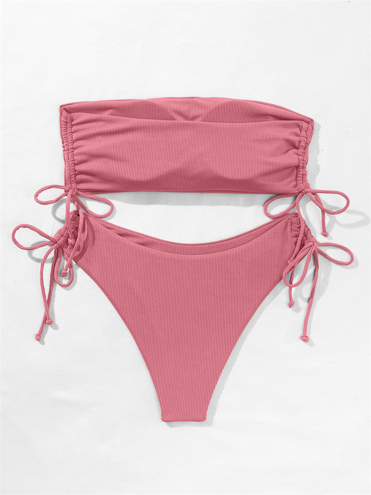 여성을위한 유럽과 미국의 튜브 탑 비키니 수영복 2024 새로운 솔리드 컬러 섹시한 조롱박 섬 수영복 스플릿 수영복 하이 엔드스토어 가기