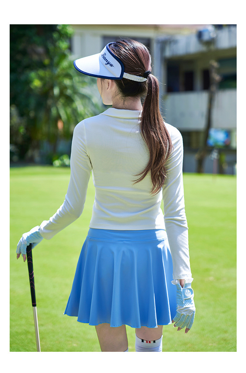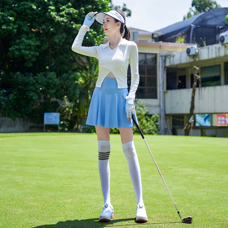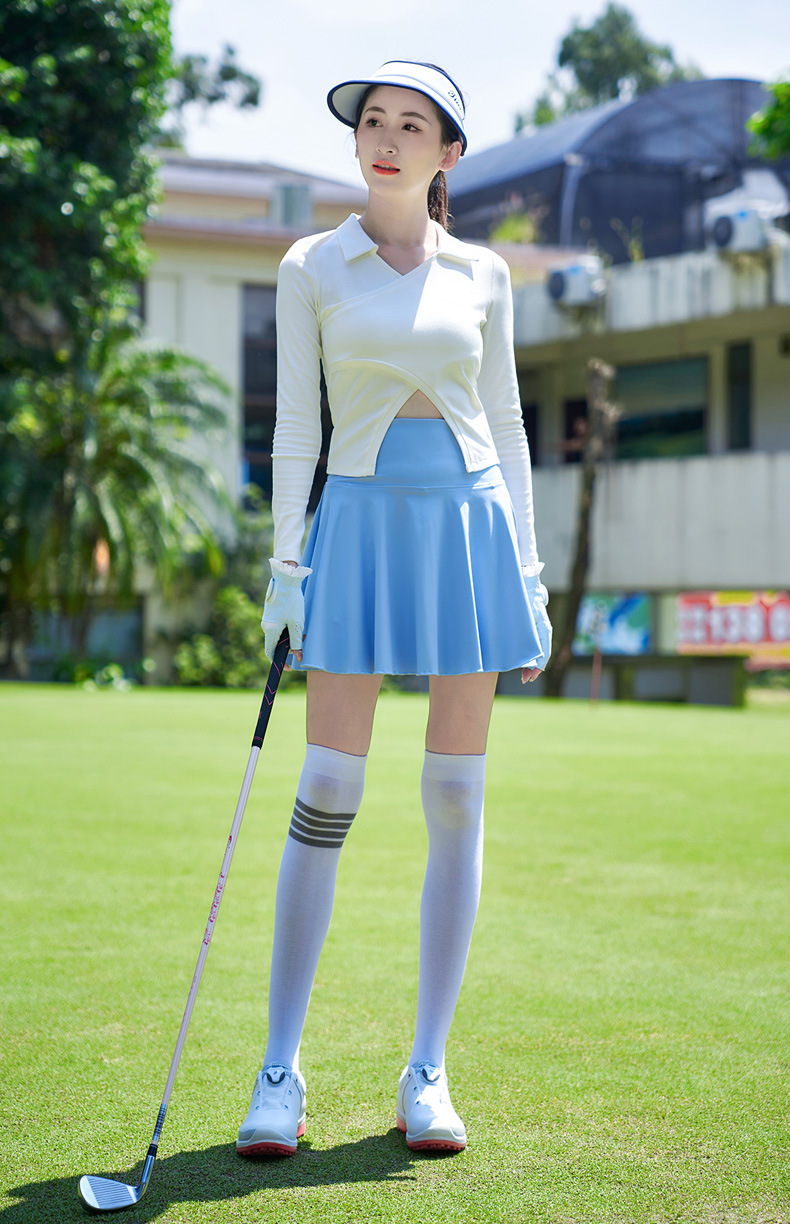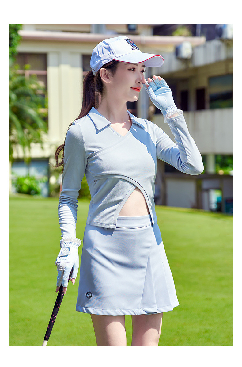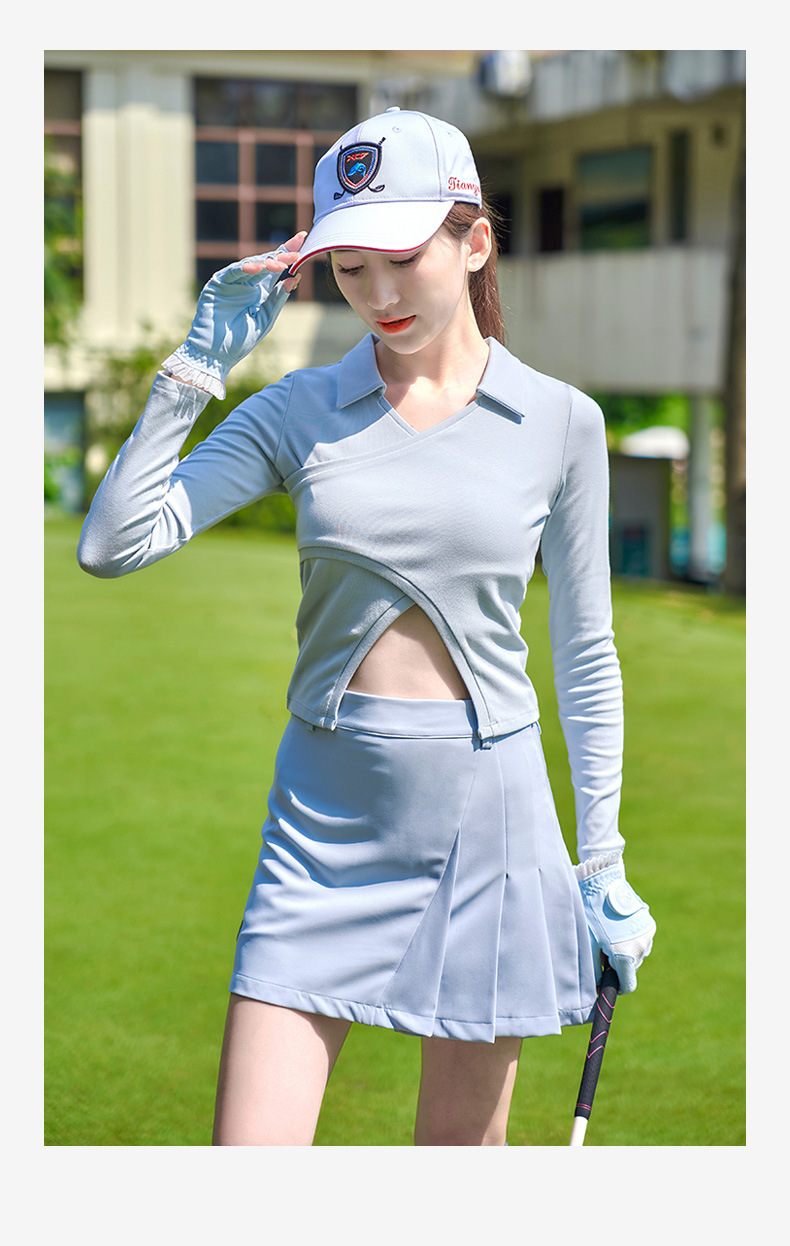 TTYGJ 한국식 골프 유니폼 여성 의류 가을 패션 슬리밍 기질 불규칙한 크로스 슬림핏 긴소매 탑스토어 가기