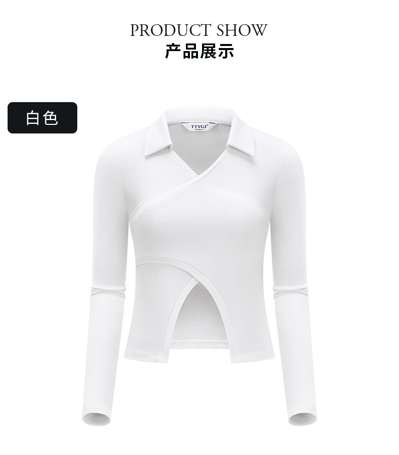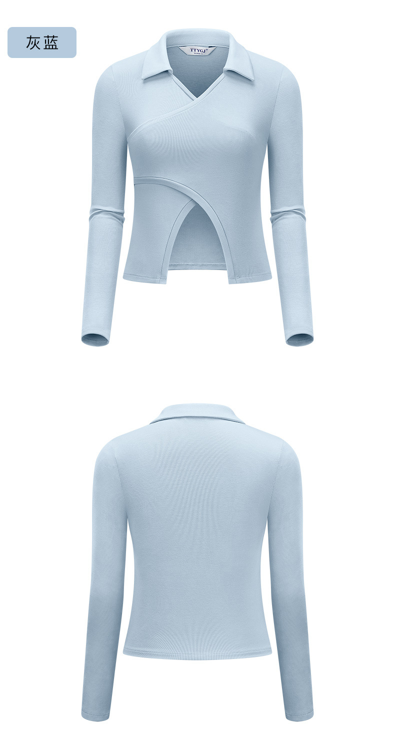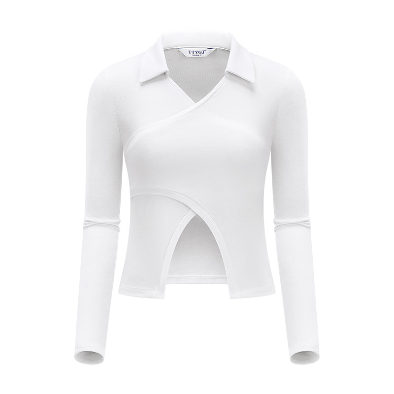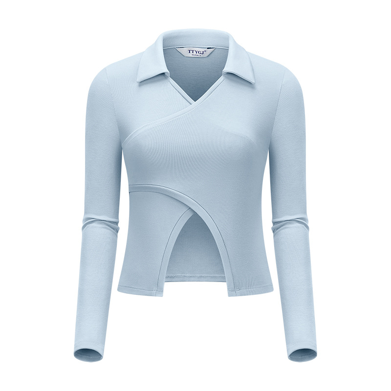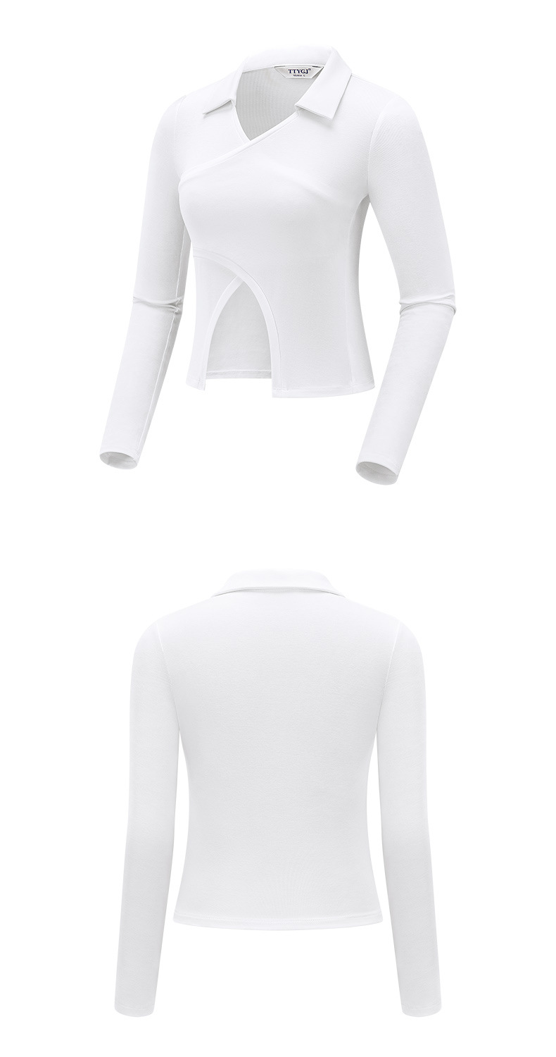 TTYGJ 한국식 골프 유니폼 여성 의류 가을 패션 슬리밍 기질 불규칙한 크로스 슬림핏 긴소매 탑